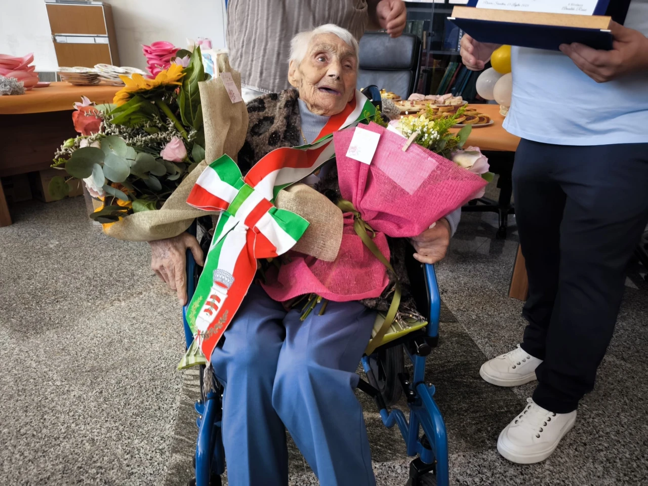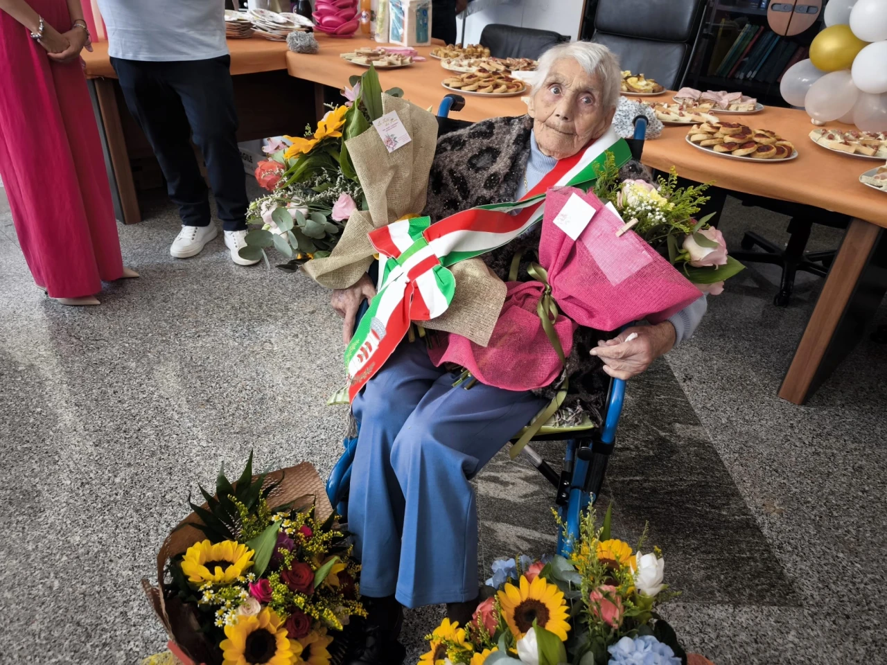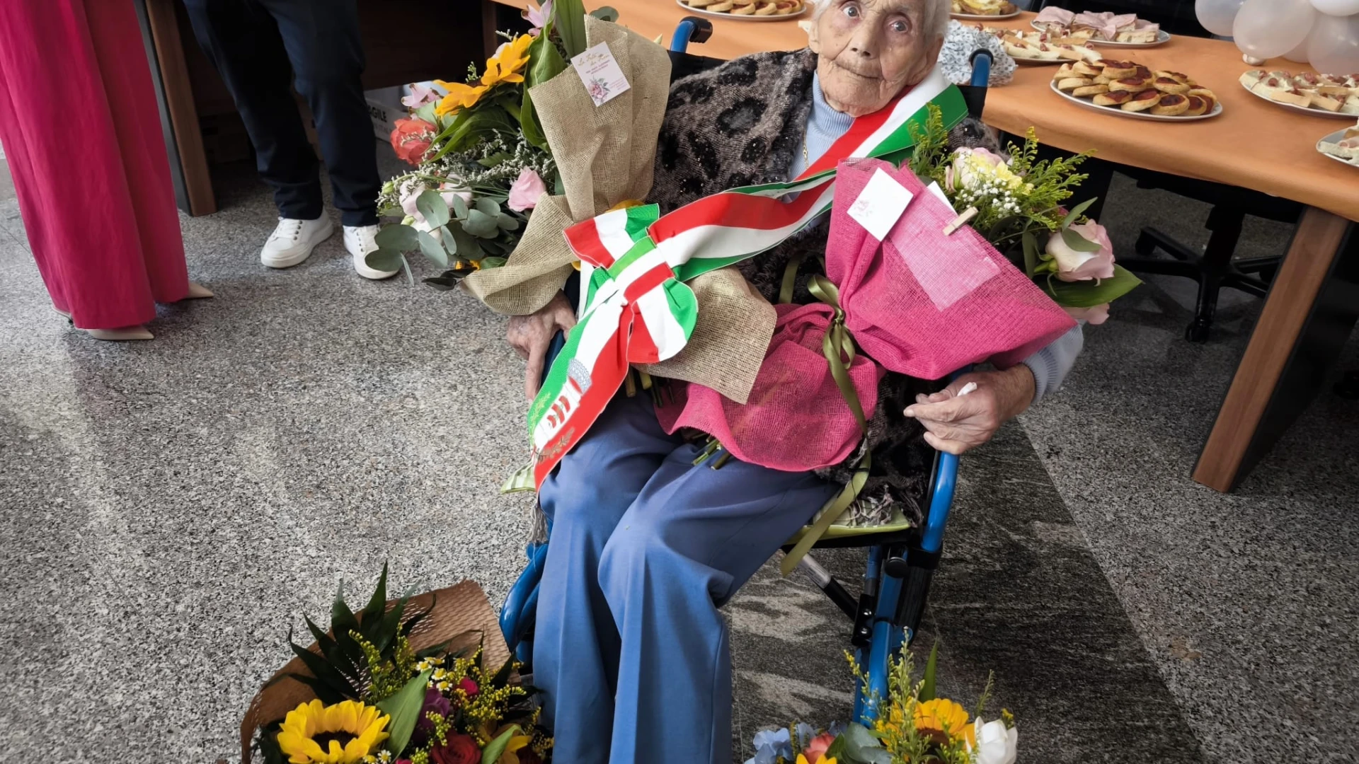 RIONERO SANNITICO. Una giornata di festa che i suoi familiari le hanno voluto dedicare. Anna Di Vincenzo di Rionero Sannitico, ha festeggiato quest’oggi il suo centesimo compleanno. Si tratta della seconda nonnina del territorio comunale che taglia questo importantissimo traguardo. Per lei una mega festa di paese. Prima la celebrazione della Santa Messa e subito dopo il rinfresco in piazza all’interno di un locale adiacente la sede del Municipio di Rionero Sannitico. Il sindaco Arnaldo Rossi, per l’occasione, ha consegnato a nonna Anna la fascia di primo cittadino e una targa commemorativa della giornata, trasformando cosi l’anziana piu’ longeva di Rionero nel sindaco per un giorno. GUARDA IL SERVIZIO.