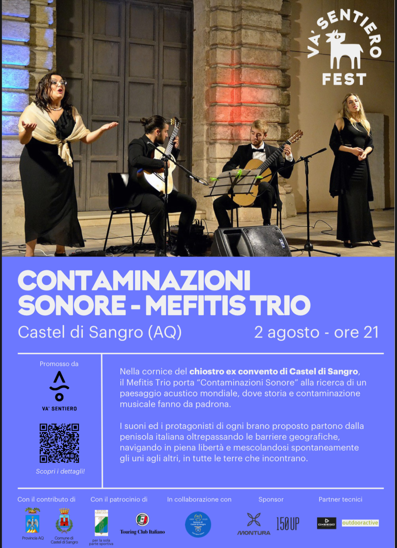 La serata proseguirà alle ore 21 nel chiostro dell’ex convento con l’esibizione del Mefitis Trio e il concerto “Contaminazioni Sonore”, un viaggio musicale attraverso generi e territori, oltre ogni barriera. Grande attesa da parte delle istituzioni coinvolte nell’organizzazione, tra cui il Comune di Castel di Sangro e la Provincia dell’Aquila, impegnata in vista dell’edizione 2026 che avrà come meta finale L’Aquila, designata Capitale Italiana della Cultura.