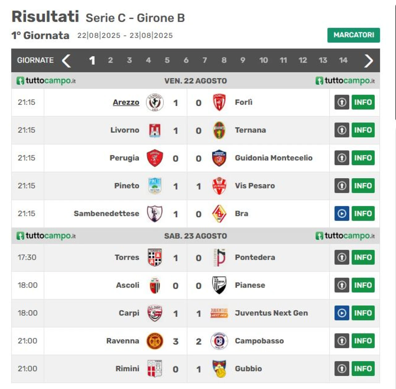 Nella gallery fotografica a margine dell'articolo consulta le schermate aggiornate con i risultati e la classifica aggiornata dopo la prima giornata di campionato di Lega Pro girone B.