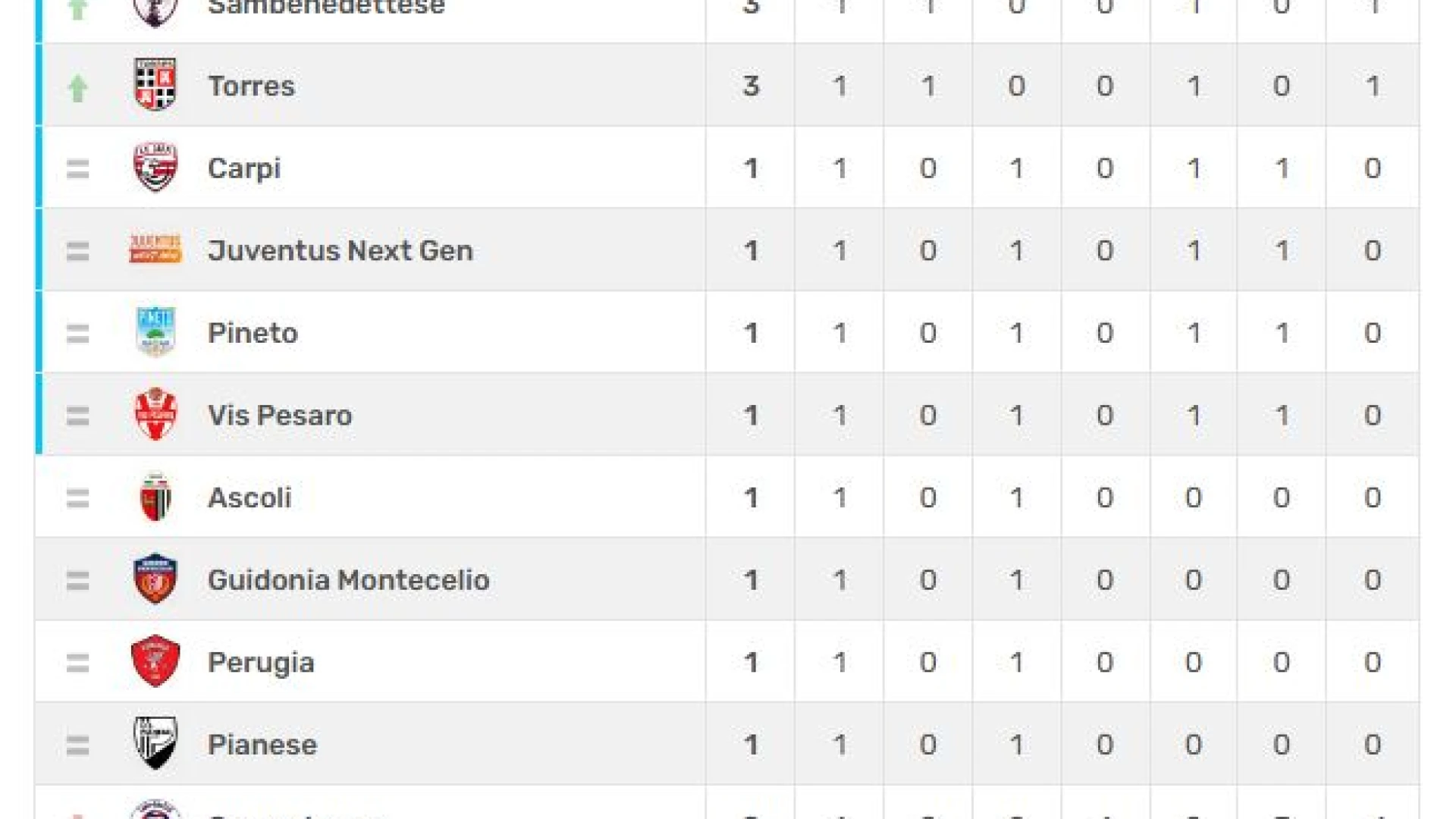 Risultati e classifica aggiornata dopo la prima giornata di campionato