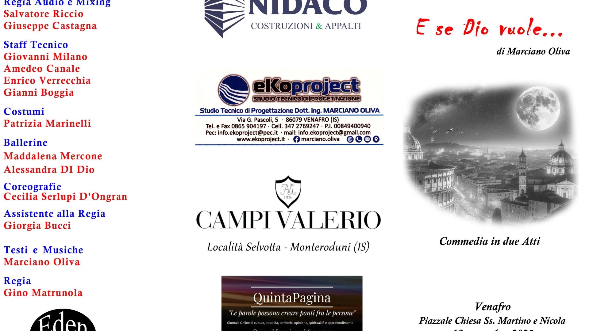 Nella gallery fotografica a margine dell'articolo la brochure ufficiale della commedia in due atti "E se Dio Vuole".