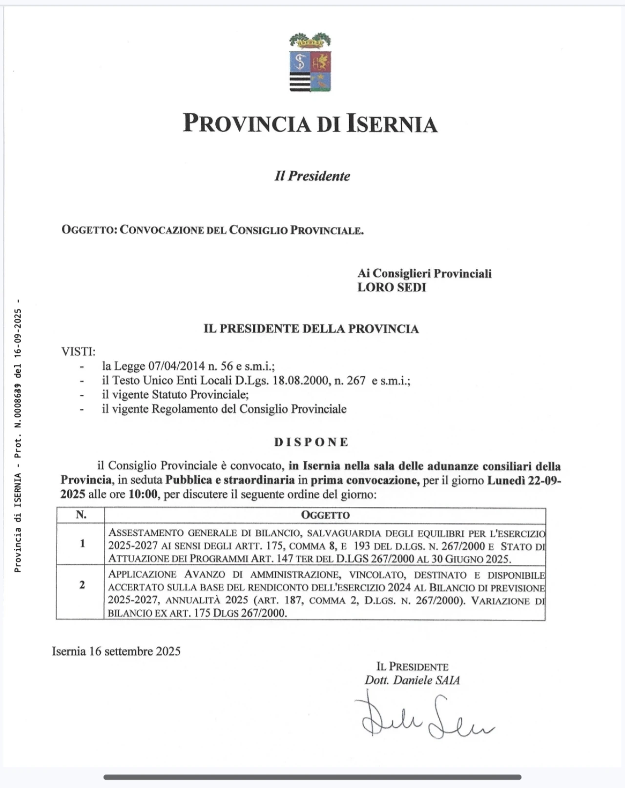 CONSULTA L'ORDINE DEL GIORNO DEL CONSIGLIO.