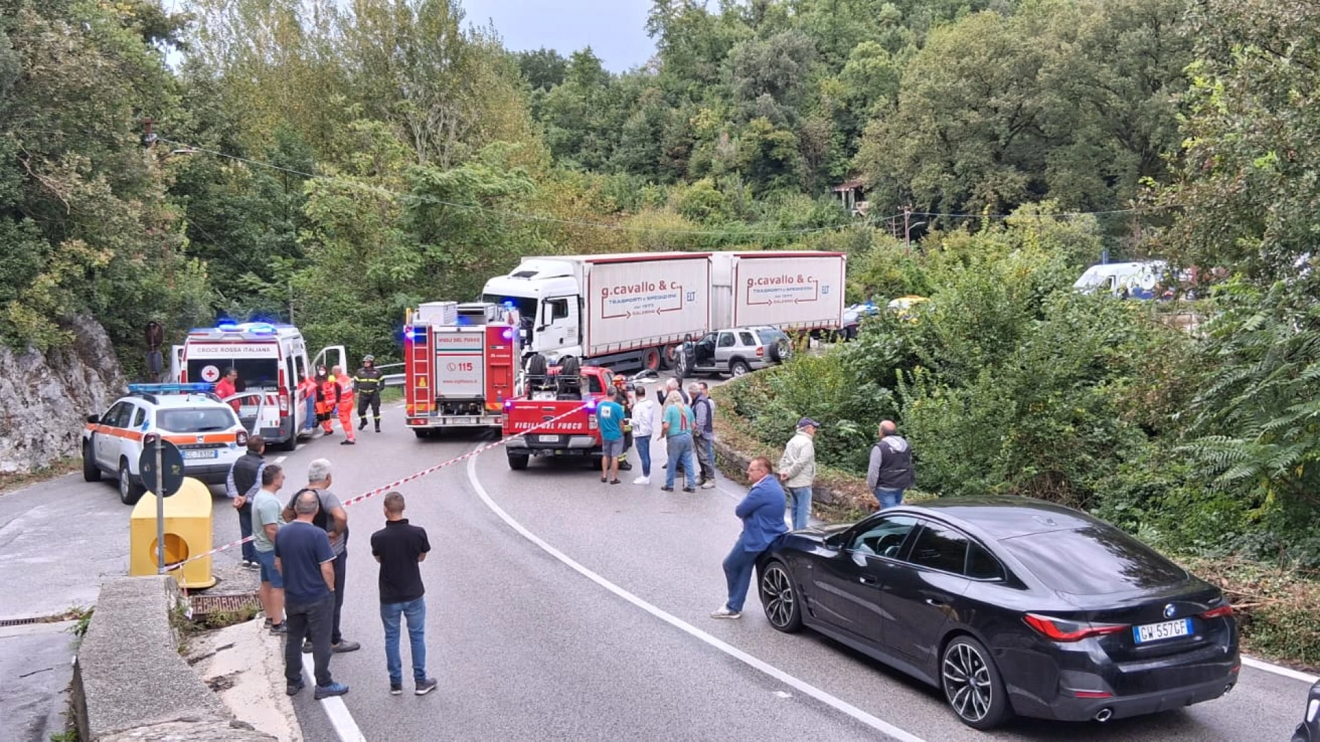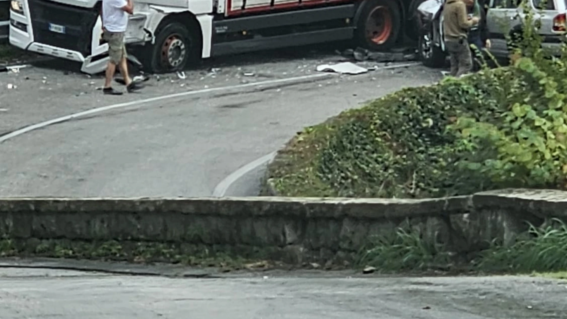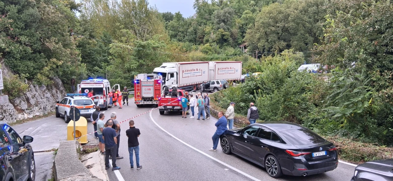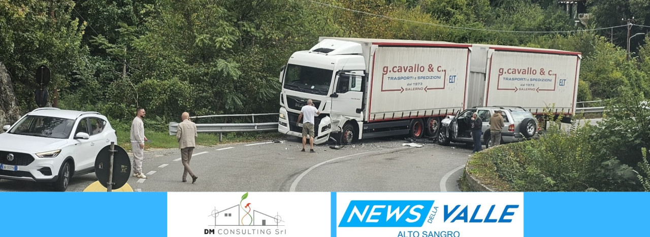 COLLI A VOLTURNO. Un violento scontro in piena curva si ' verificato pochi minuti fa sulla statale 158 Valle del Volturno all'ingresso sud del paese ne pressi della pizzeria "Lo Scoiattolo". A scontrarsi in una curva a gomito un tir adibito al trasporto merce e un Suv condotto da un automobilista della zona. Ancora da chiarire le modalità che hanno causato l'incidente tra i due mezzi.