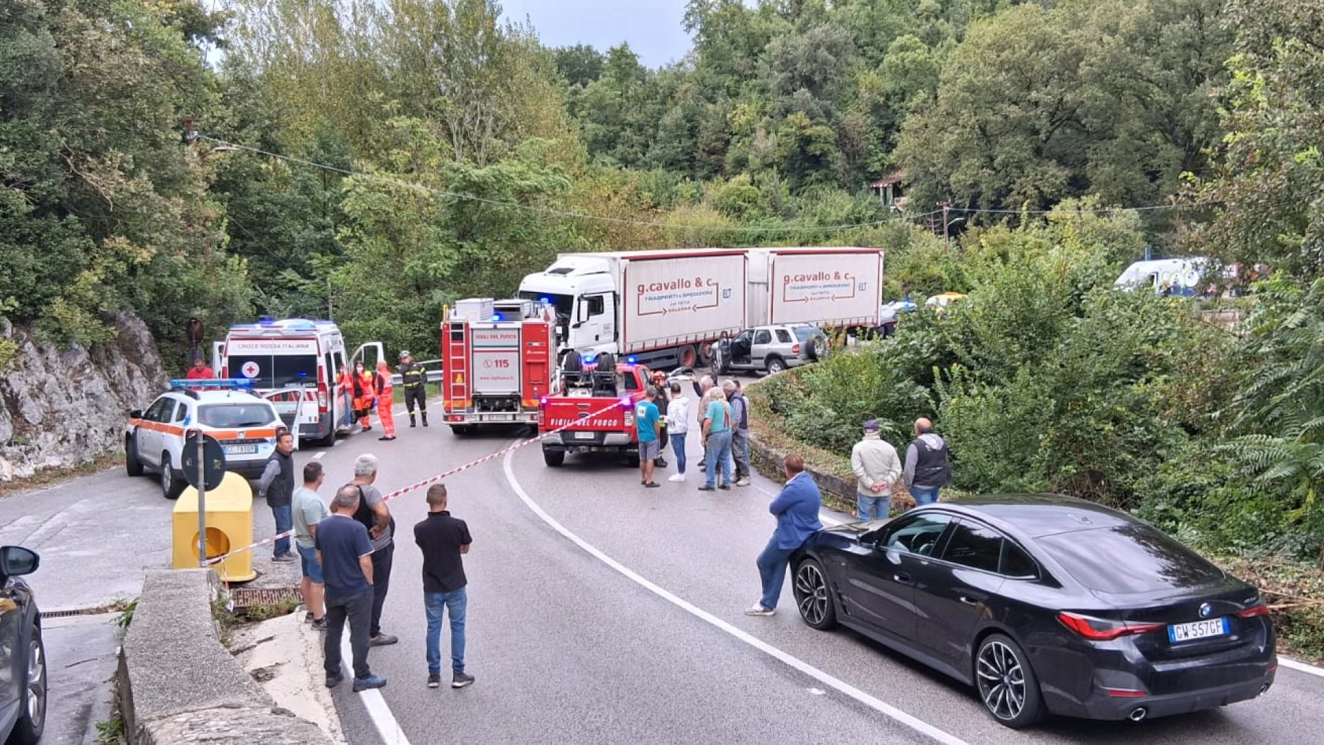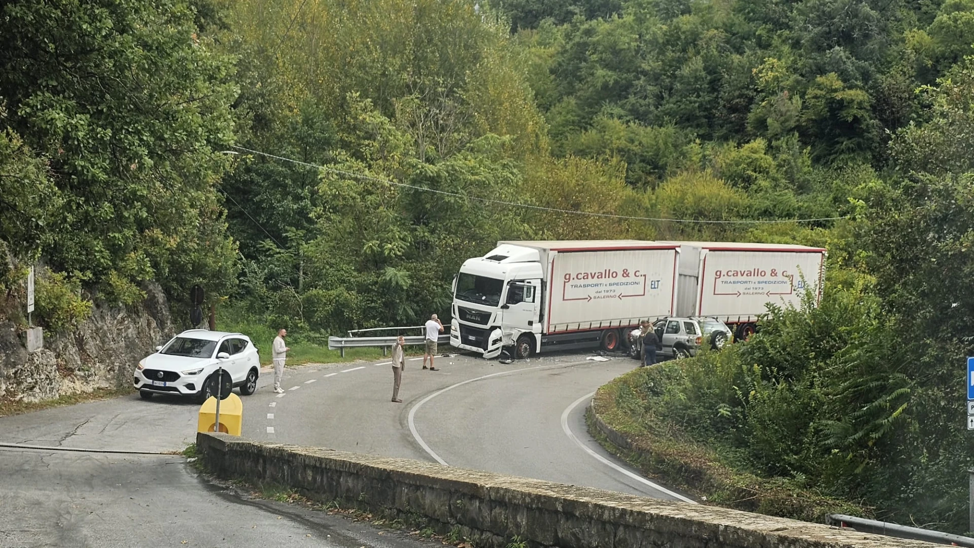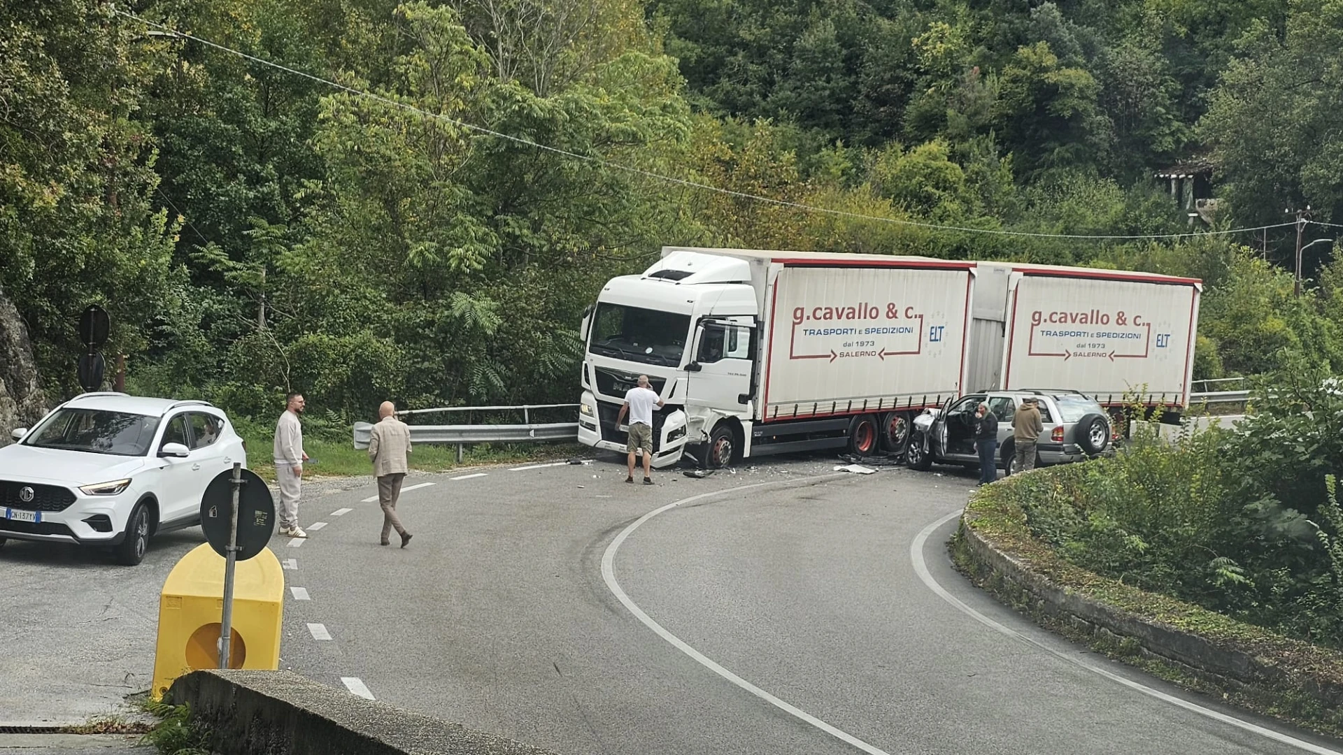 COLLI A VOLTURNO. Un violento scontro in piena curva si ' verificato pochi minuti fa sulla statale 158 Valle del Volturno all'ingresso sud del paese ne pressi della pizzeria "Lo Scoiattolo". A scontrarsi in una curva a gomito un tir adibito al trasporto merce e un Suv condotto da un automobilista della zona. Ancora da chiarire le modalità che hanno causato l'incidente tra i due mezzi.