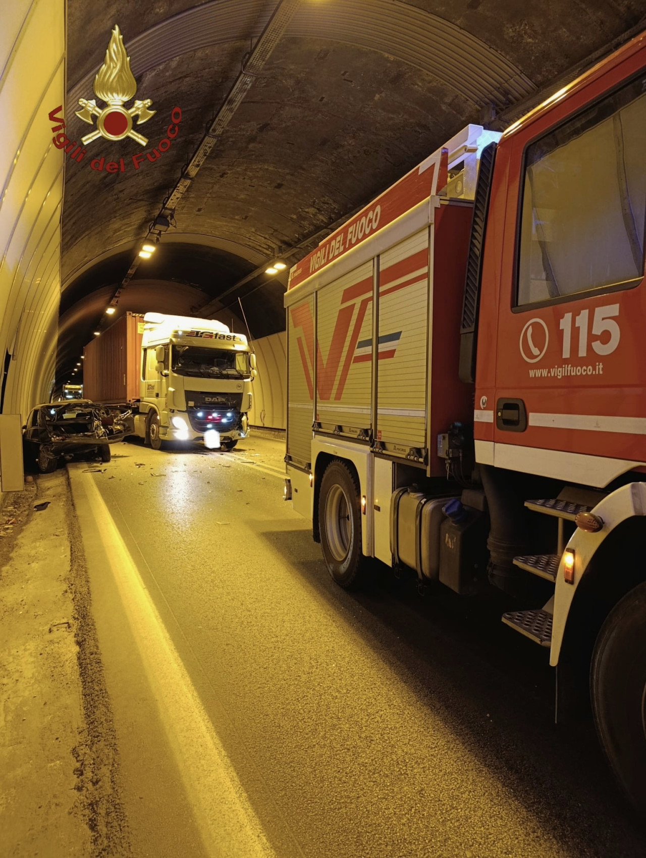 A bordo dell'auto una giovane ragazza che avrebbe subito diverse ferite ma che non dovrebbe essere in pericolo di vita. Sul posto attualmente soccorsi in atto con Vigili del Fuoco all'opera, sanitari del 128 e Forze dell'Ordine. Traffico bloccato e galleria attualmente chiusa con percorso alternativo per gli automobilisti.