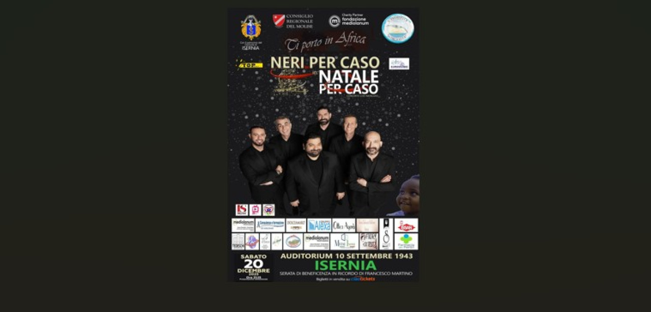 Sabato 20 dicembre ore 21 all'Auditorium 10 settembre 1943 l’associazione Oltre la Vita organizza l’evento benefico con degli ospiti d’eccezione: i Neri per Caso. Il noto gruppo vocale si esibirà con lo spettacolo ‘Natale per caso’ e il ricavato sarà utilizzato per finanziare il progetto di ricostruzione di un villaggio nella provincia di Rutana, in Burundi.