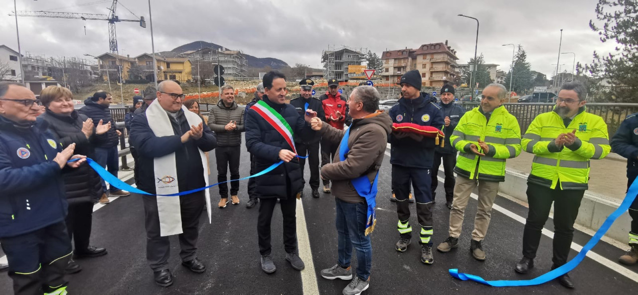 Roccaraso- Inaugurato questa mattina il nuovo ponte sulla strada provinciale 84, nel territorio comunale di Roccaraso (L'Aquila)."L’opera riveste un ruolo strategico per la viabilità dell’Alto Sangro, assicurando il collegamento tra la strada statale 17 e il centro abitato di Roccaraso e garantendo l’accesso a un’area individuata come 'zona sicura' dal Piano comunale di Protezione civile. Proprio per questa funzione - ha spiegato il presidente della Provincia dell'Aquila, Angelo Caruso - il ponte è stato adeguato agli standard previsti per le infrastrutture di rilievo strategico, con una progettazione in Classe d’Uso IV, a tutela della sicurezza pubblica e della continuità dei collegamenti". L’intervento ha comportato un investimento complessivo pari a 615 mila euro: Il progetto, inizialmente finanziato per 460 mila euro, è stato infatti rimodulato in corso d’opera per consentire l’adeguamento del ponte ai più elevati livelli di sicurezza, oltre che per affrontare lavorazioni aggiuntive e imprevisti tecnici emersi durante l’esecuzione dei lavori.