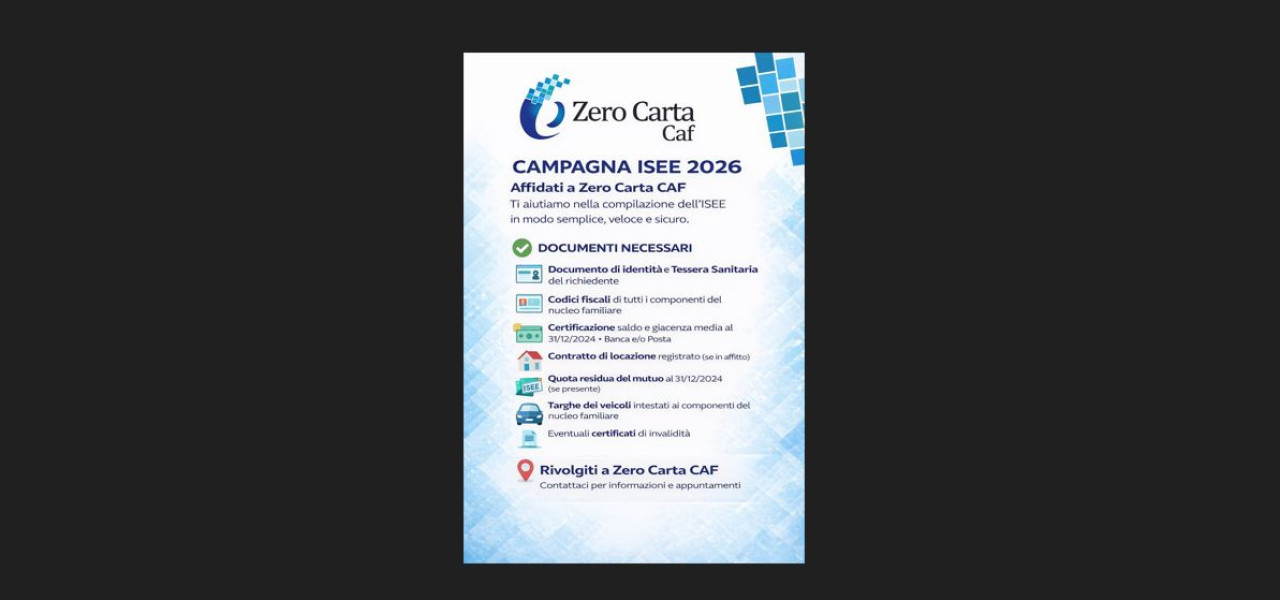 📍 Contatta la sede Zero Carta CAF di zona, che ti assisterà per la compilazione della DSU e la richiesta dell'attestazione Isee aggiornata.