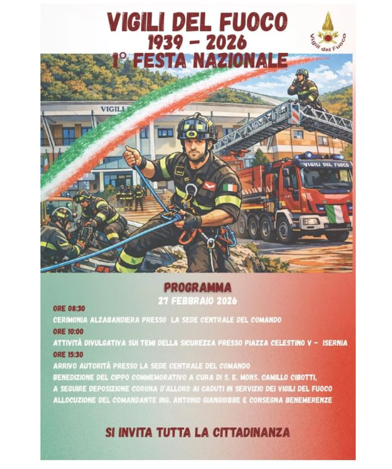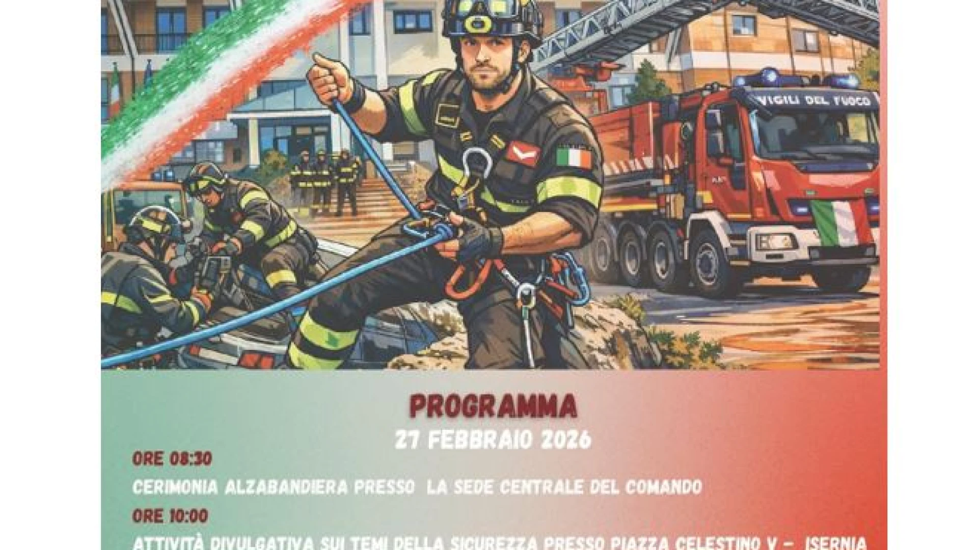 ISERNIA. Il giorno 27 febbraio 2026 si celebrerà, per la prima volta, la Festa commemorativa dell’istituzione del Corpo Nazionale dei Vigili del Fuoco, ricorrenza ufficialmente stabilita per il 27 febbraio di ogni anno.
