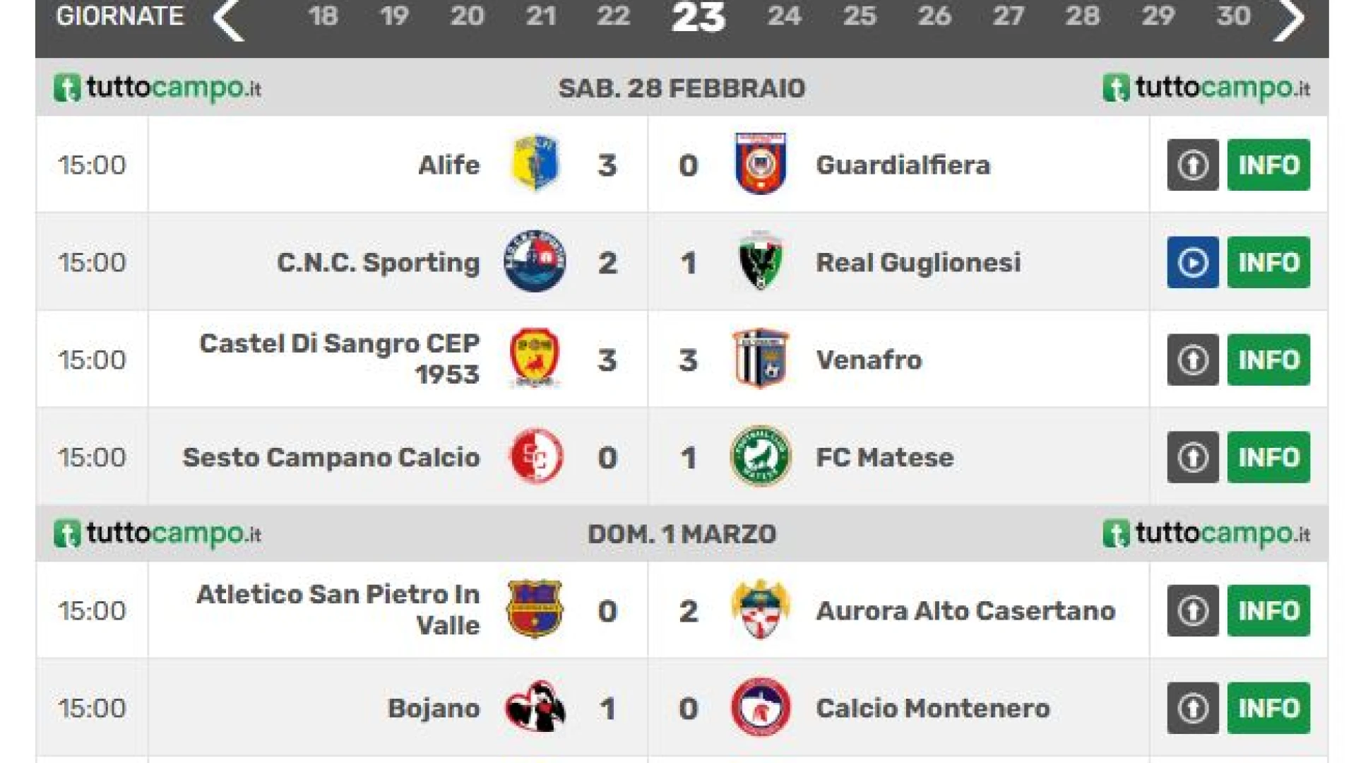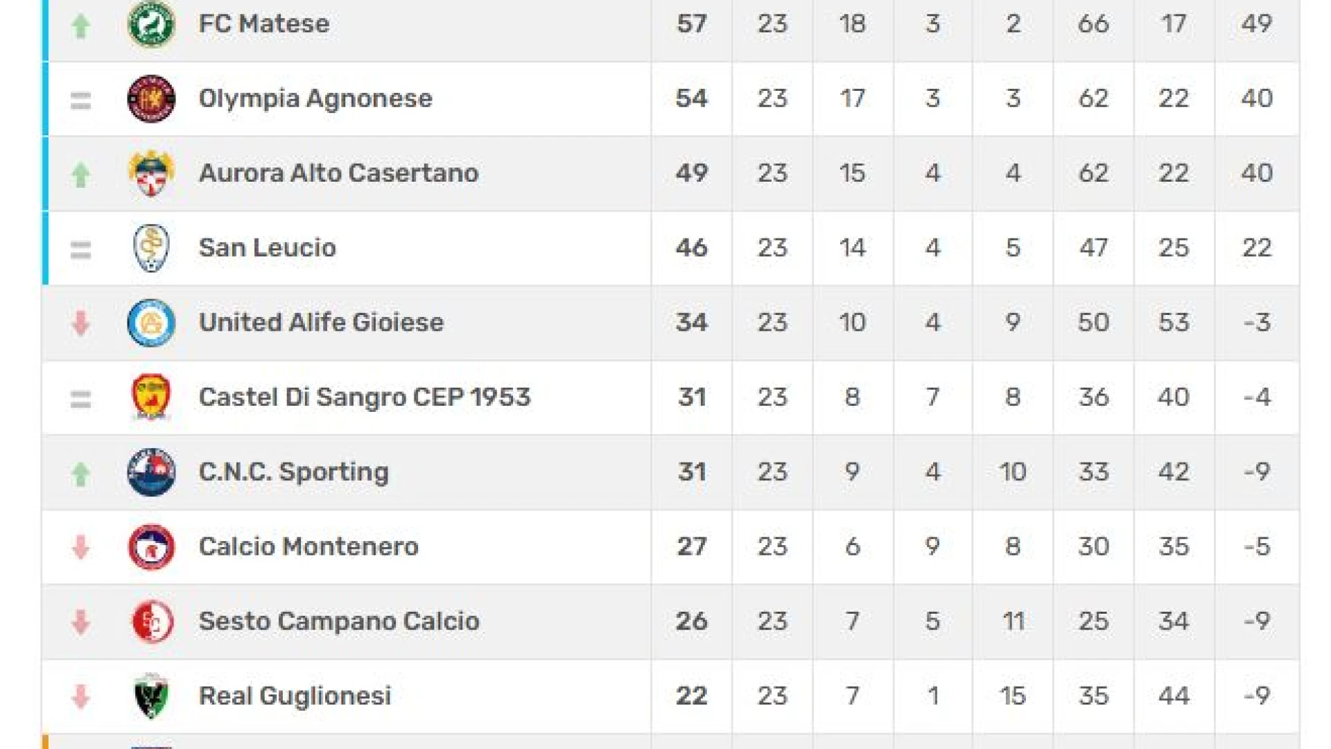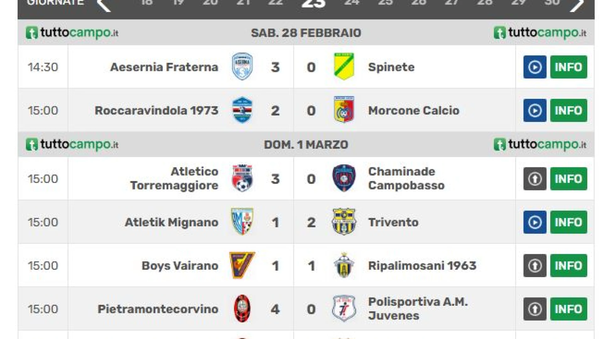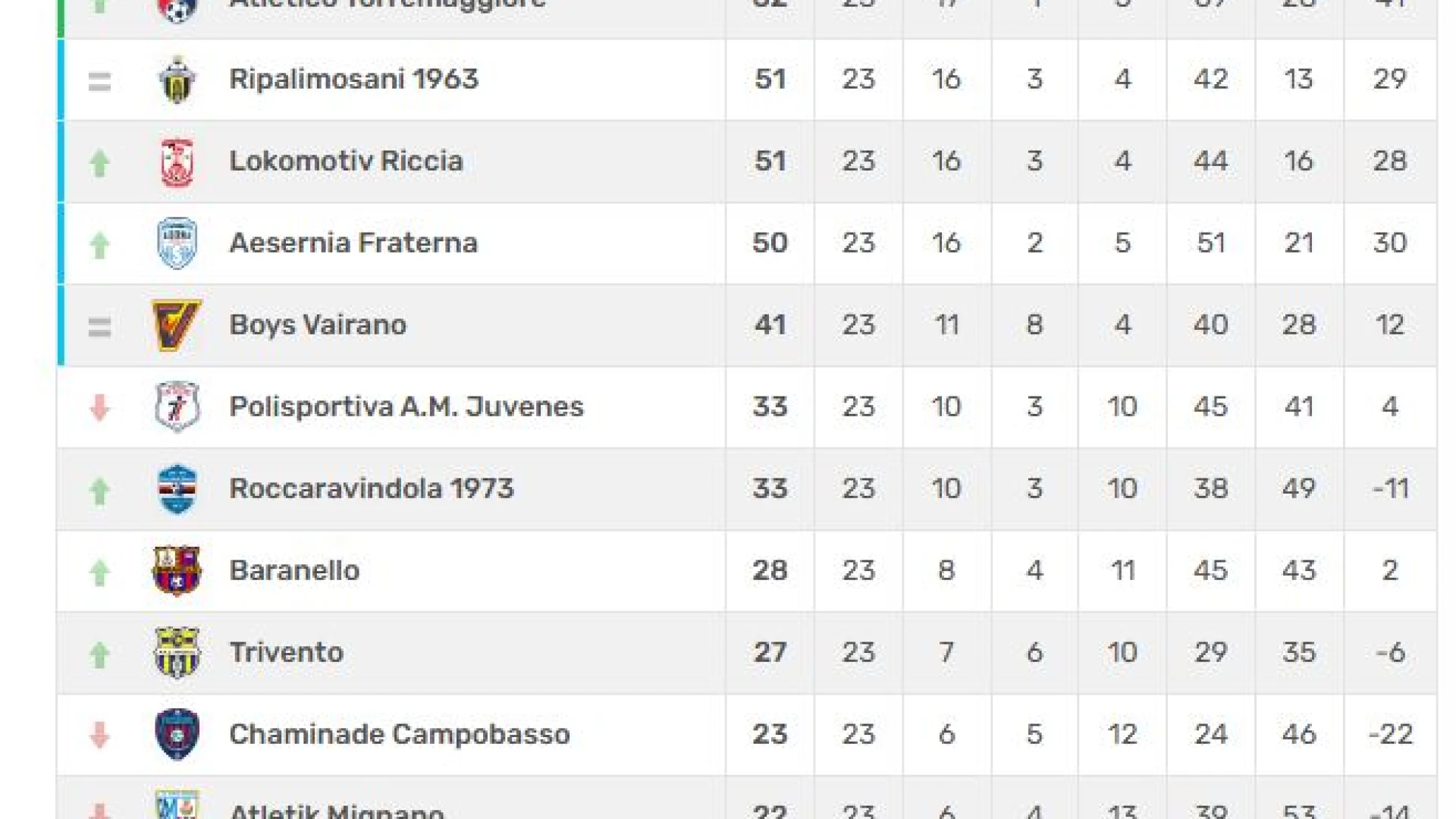 Serie D girone F, Eccellenza e Promozione Molise: risultati e classifiche dopo le gare del fine settimana. (FOTO).