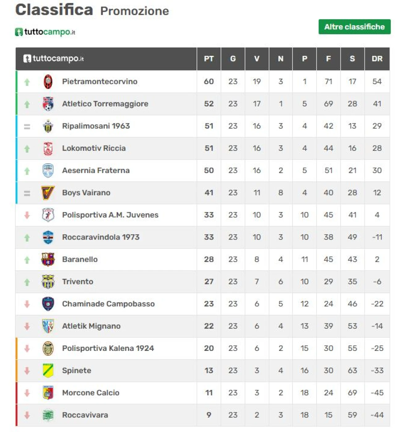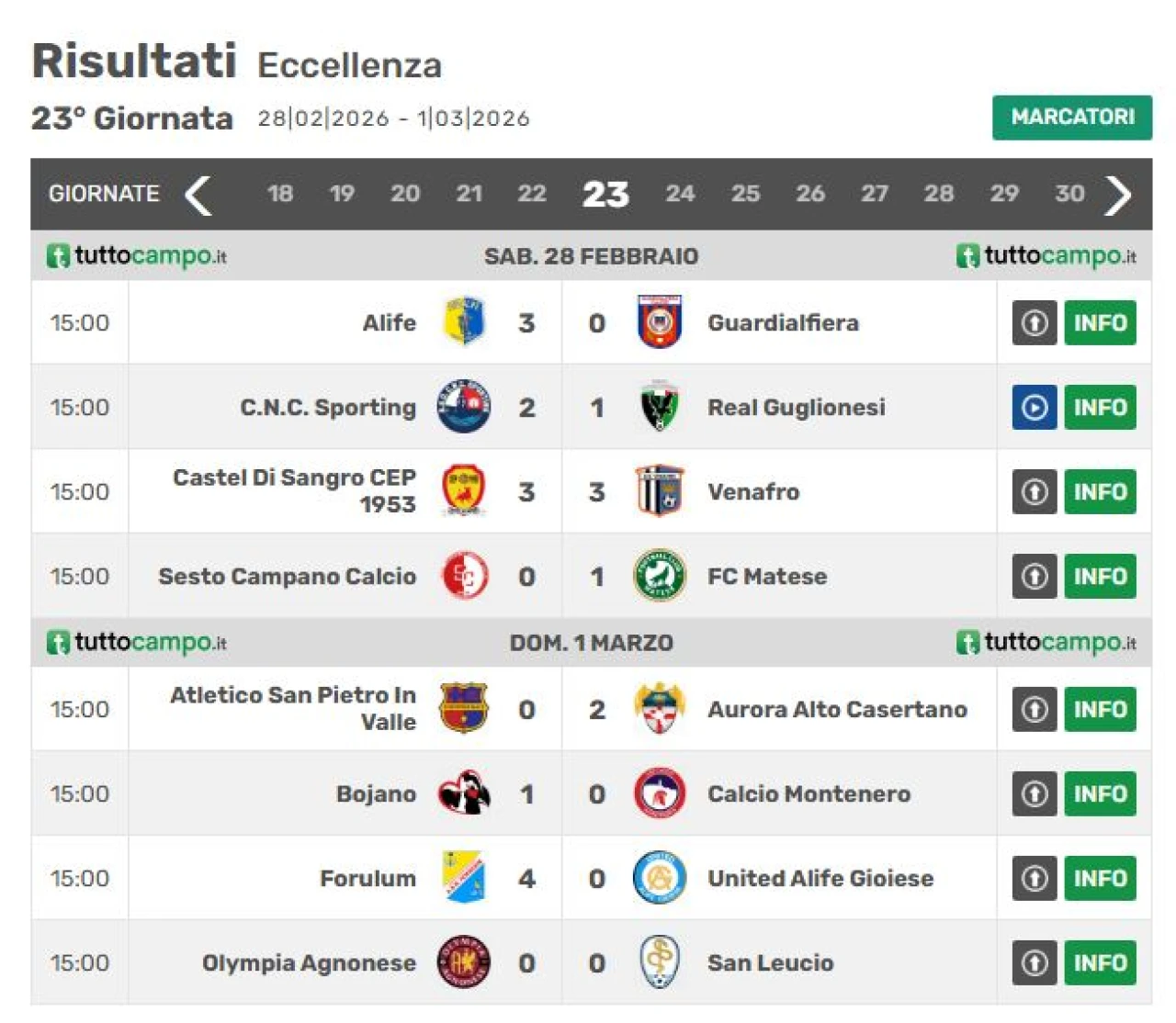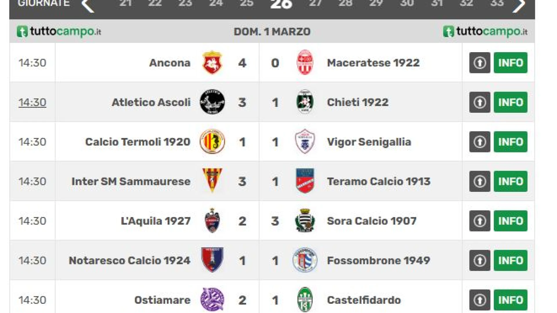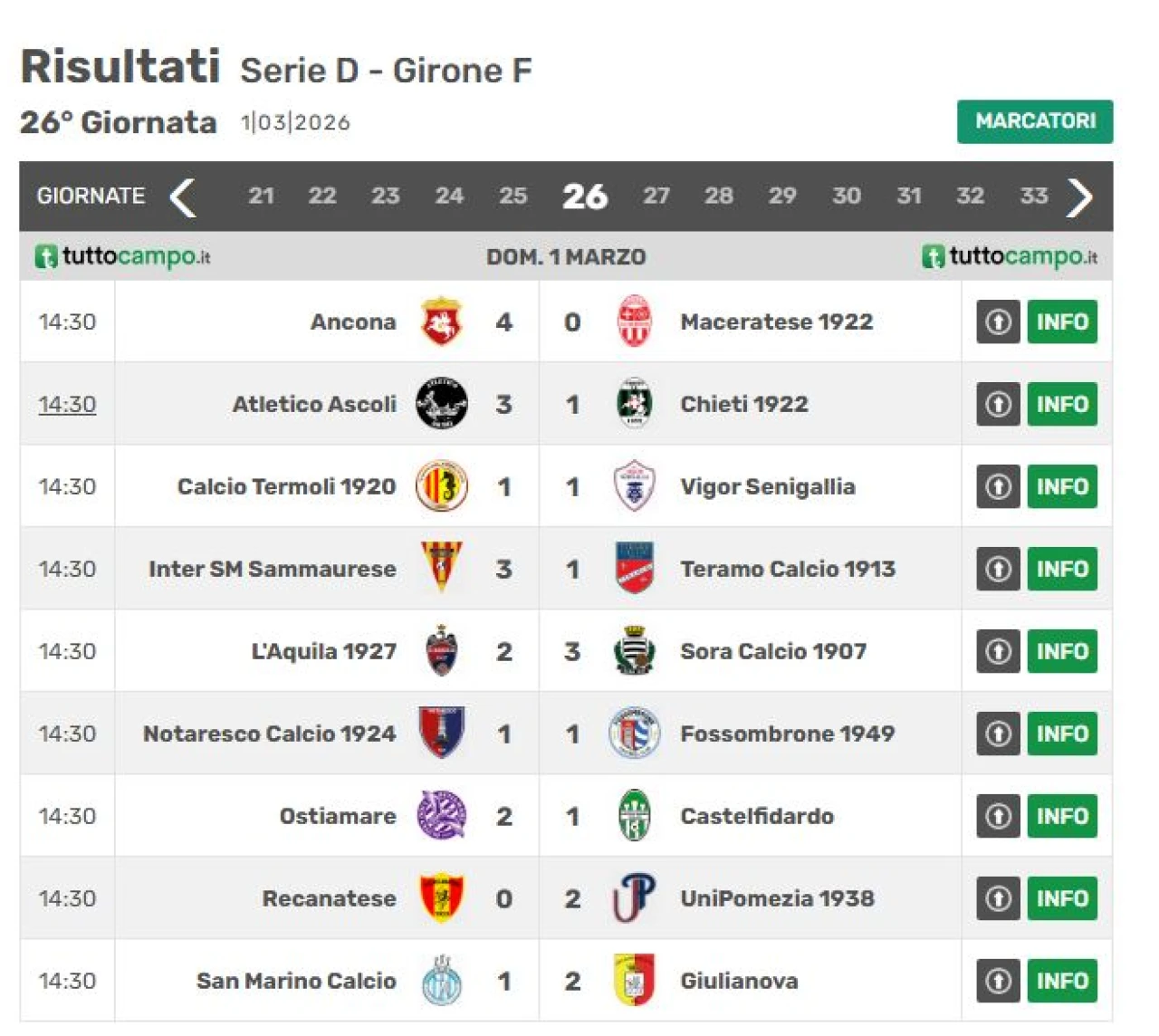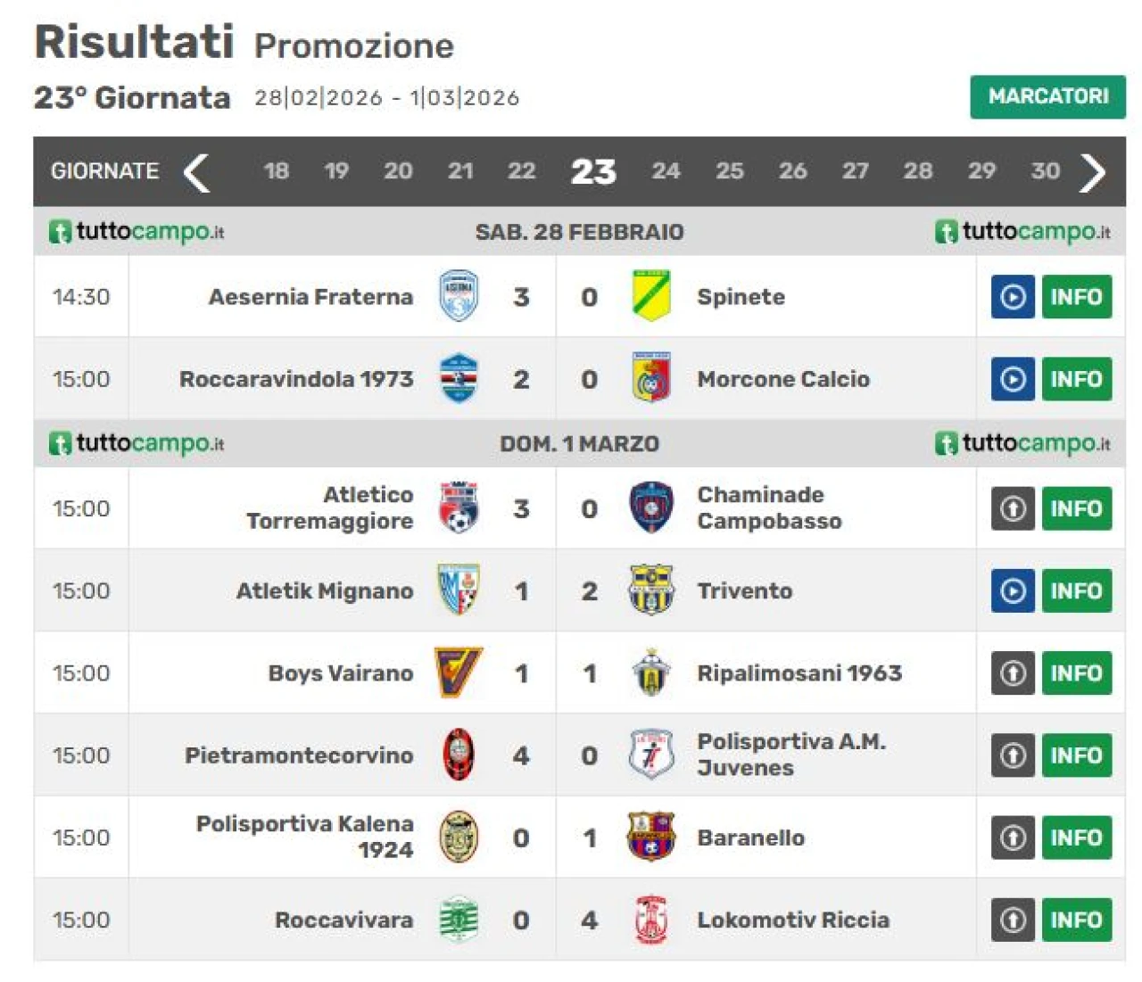 Serie D girone F, Eccellenza e Promozione Molise: risultati e classifiche dopo le gare del fine settimana. (FOTO).