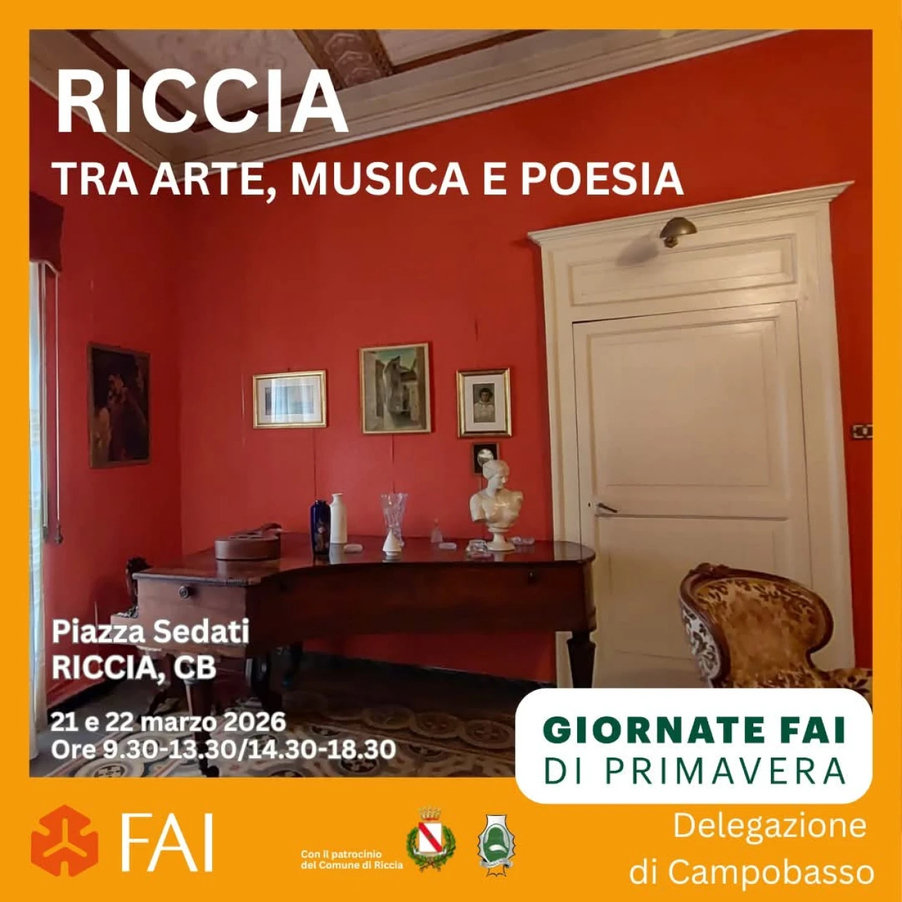 Accogliendo l’invito del FAI, dal 1993 - anno della pionieristica prima edizione dell’evento – al 2025 quasi 13 milioni e mezzo di italiani hanno potuto scoprire e riscoprire oltre 17.000 luoghi speciali delle città e dei territori in cui vivono. IN MOLISE: RICCIA (CB) Per le Giornate FAI di Primavera saranno proposti quattro itinerari diversi alla scoperta di Riccia, borgo dalla storia millenaria che affonda le radici all’epoca romana e conserva tracce della sua ricca eredità storica, dalle testimonianze angioine fino ai monumenti rinascimentali. Il banchetto di accoglienza in Piazza Sedati sarà il punto di partenza e di rientro per tutti gli itinerari. Ogni itinerario è indipendente dagli altri e la durata prevista per ognuno di loro è di circa 60 minuti. Ogni itinerario prevede la visita a due luoghi, uno religioso e l’altro civile e in piazza si potrà optare se farne uno o più. Per ogni itinerario sarà possibile sostenere la missione della Fondazione con una donazione Accompagnati nella narrazione dagli Apprendisti Ciceroni della terza e quinta del Liceo Scientifico “G. Galilei” di Riccia sarà possibile visitare luoghi conosciuti o sconosciuti di Riccia come le case private o luoghi non aperti normalmente al pubblico.
