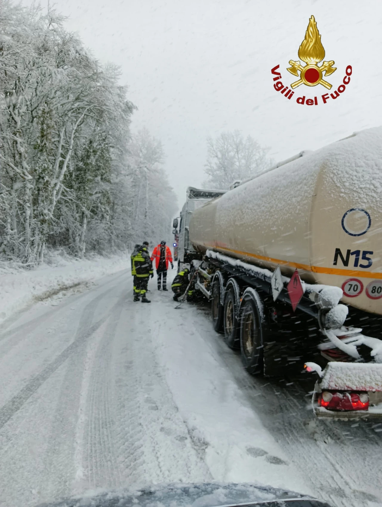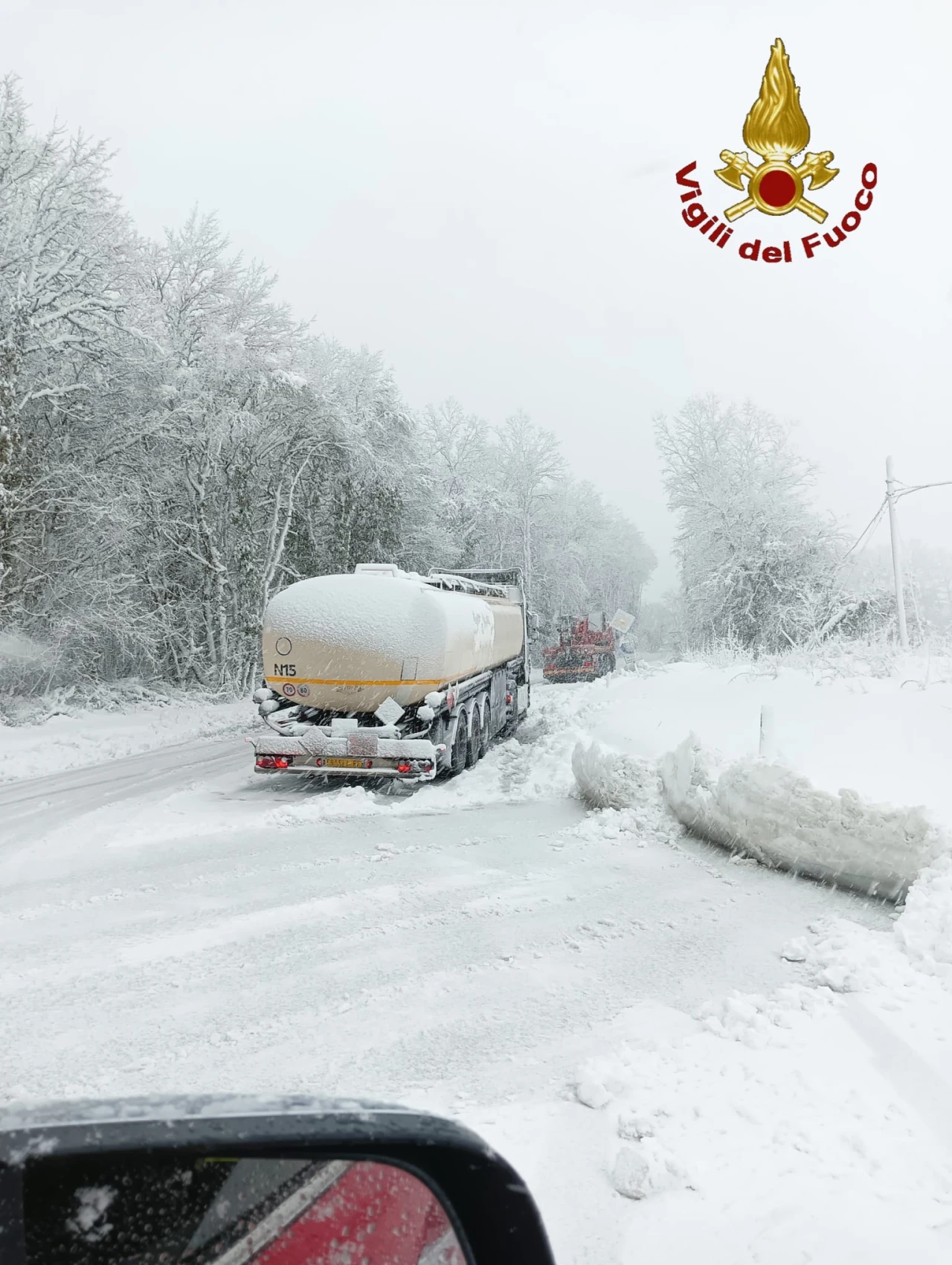 ALTO MOLISE. Nella mattinata odierna, a causa di una copiosa nevicata in località Staffoli, nel comune di Agnone, un’autocisterna adibita al trasporto di liquidi infiammabili è rimasta bloccata lungo la sede stradale.Sul posto sono prontamente intervenuti i Vigili del Fuoco, che hanno provveduto al recupero del mezzo, anche con l’ausilio di un’autogru, riuscendo a rimetterlo in sicurezza sulla carreggiata.Superato il tratto interessato dalla nevicata, le condizioni meteo sono progressivamente migliorate, con la neve che si è trasformata in pioggia, consentendo così all’autocisterna di riprendere regolarmente il viaggio.Il mezzo ha potuto proseguire la marcia al fine di garantire il rifornimento dei distributori di carburante della zona.