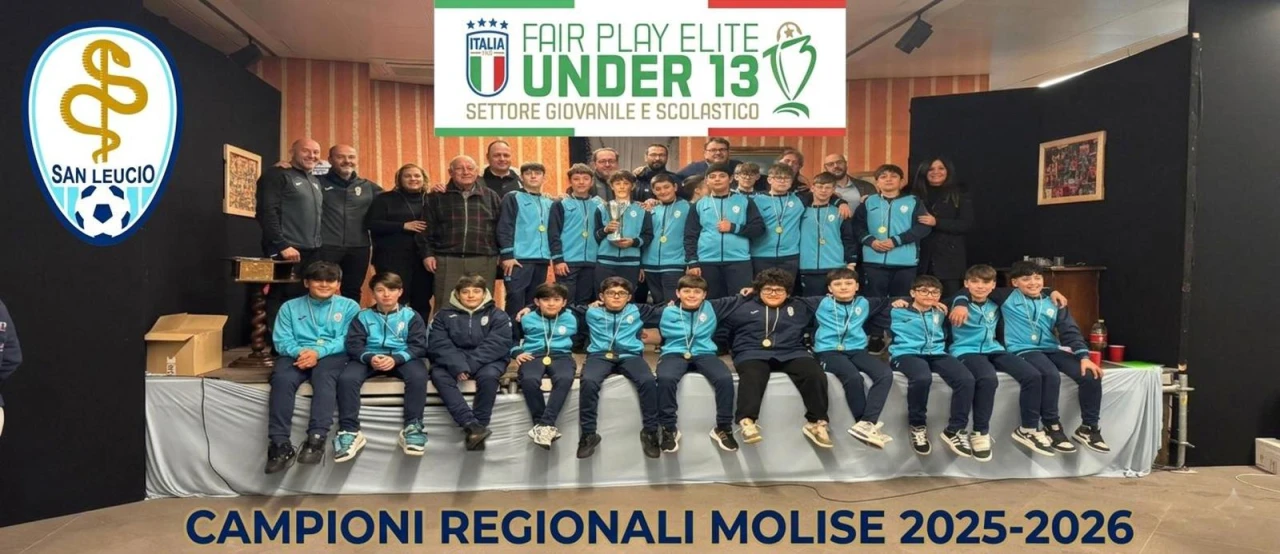ISERNIA. Il calcio, quello vero, non finisce mai al triplice fischio. A volte richiede un tempo supplementare fatto di attesa e pazienza, ma alla fine la giustizia sportiva e il merito trionfano sempre. Nella serata di ieri, 1 aprile 2026, presso l'Auditorium "X Settembre 1943", i nostri Under 13 hanno finalmente alzato al cielo la coppa del Torneo Fair Play Élite Molise 2025/2026! Dopo l'inconveniente formale sul campo il 15 marzo 2026 all’Acquasantianni di Trivento che aveva temporaneamente rimandato la festa, i nostri ragazzi sono stati premiati ufficialmente dal Delegato Attività di Base SGS Molise, Fulvio Parcesepe, e dal RTT AST Isernia, Alessio Camuso. Un momento emozionante che ha visto i giovani atleti ricevere le medaglie del primo posto, bissando lo storico successo dell’edizione 2022/2023.
