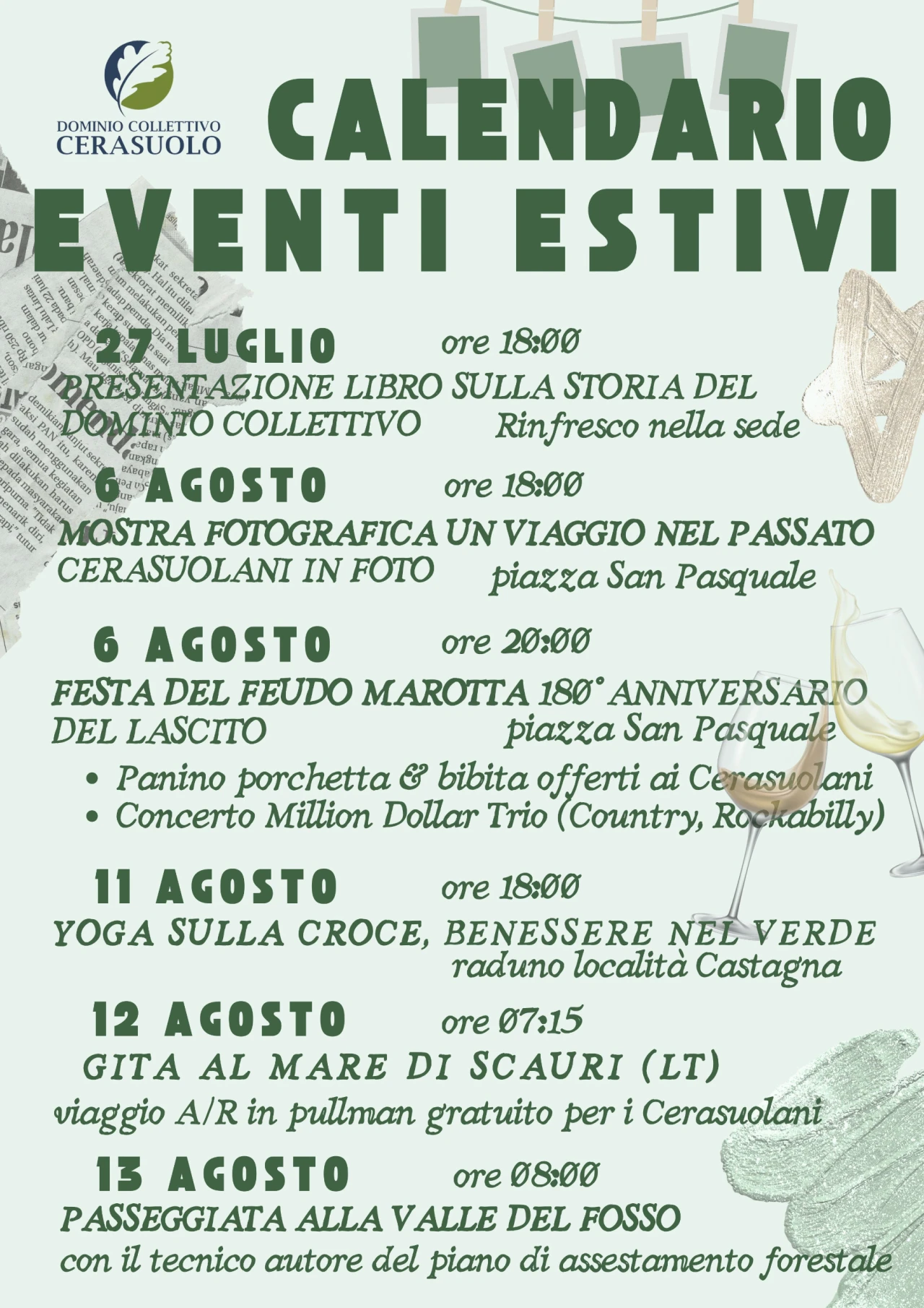 FILIGNANO-LOCALITA' CERASUOLO. Sono numerosi gli eventi promossi per l'estate 2025 dal locale Dominio Collettivo. Eventi, sopratutto di carattere ambientale che andranno avanti fino al prossimo 13 agosto.