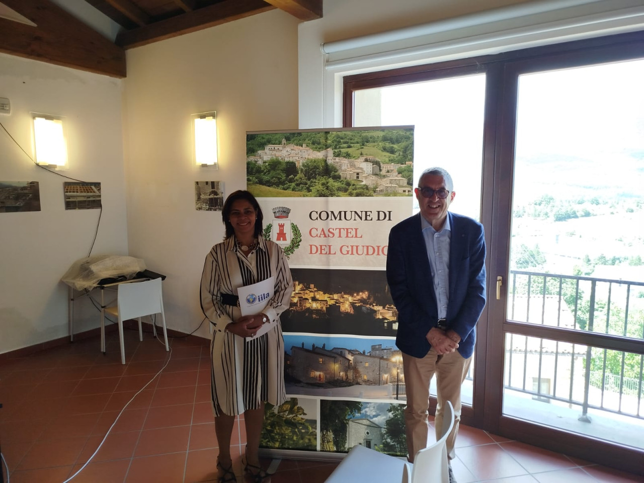 La capodelegazione di IILA e segretario tecnico scientifico, dott.ssa Tatiana Ribeiro Viana, e il dott. Mauro Vandali della Segreteria Tecnico Scientifica, sono stati accompagnati in visita guidata in un tour tra le esperienze virtuose del borgo che negli ultimi anni hanno attirato l'attenzione di enti e istituzioni a livello nazionale e internazionale e alle nuove in fase di realizzazione grazie al progetto “Castel del Giudice Centro di (ri)Generazione dell’Appennino” con cui il Comune ha vinto il Bando Borghi Linea A del PNRR. I delegati hanno scoperto la storia della riconversione di terreni abbandonati che ha dato vita ai meleti biologici dell’azienda agricola Melise, il birrificio agricolo Maltolento, l’Apiario di Comunità, l’albergo diffuso Borgotufi, nato dal recupero di stalle e fienili che costituivano l’antico abitato, la costituzione della CER – Comunità Energetica Rinnovabile che vede l’adesione di circa 70 cittadini, la rinascita del centro storico tramite soluzioni strategiche di ristrutturazione di vecchi stabili che saranno trasformati in residenze smartworking per il lavoro digitale, le residenze di senior social housing, il forno di comunità, l’incubatore culturale. Ma anche le iniziative culturali con approccio comunitario come il workshop di fumetto e di musica, le rassegne letterarie, il CastelDelGiudice Buskers Festival, la Festa della Mela, gli incontri sul turismo delle radici. E poi Progetto Appennino, in collaborazione con Fondazione Edoardo Garrone, il campus di formazione per giovani imprenditori appenninici e per il rafforzamento di reti d’impresa per realtà già presenti sul territorio.