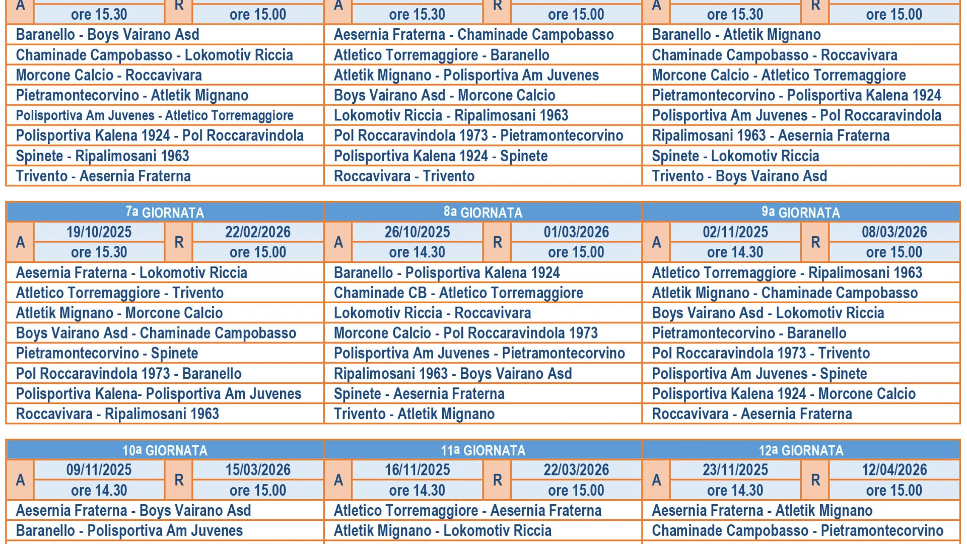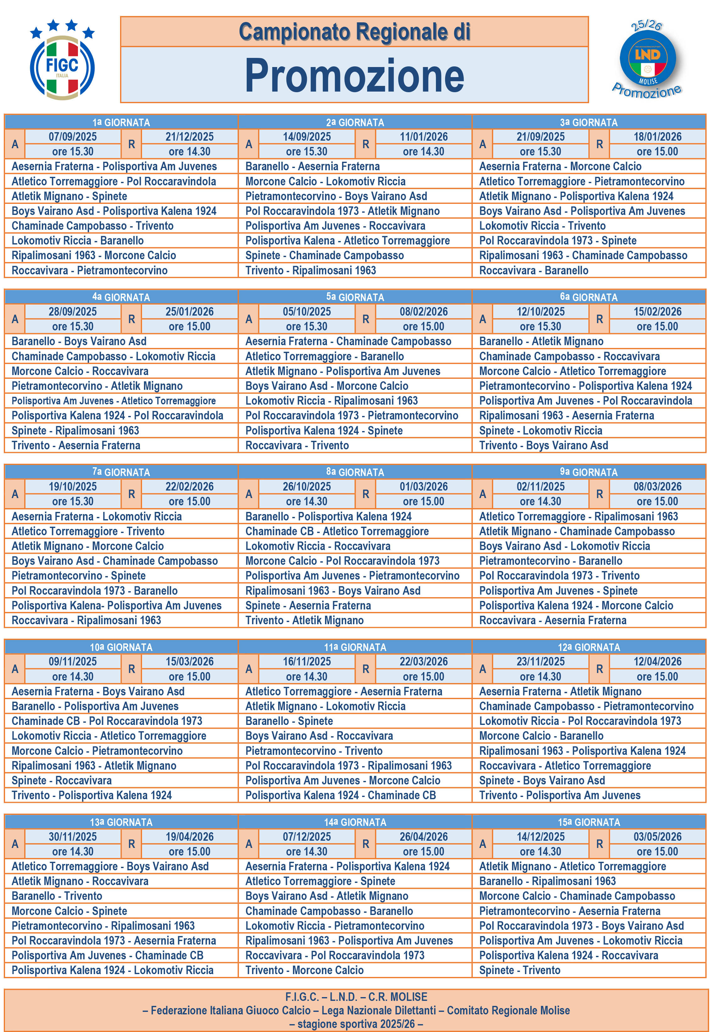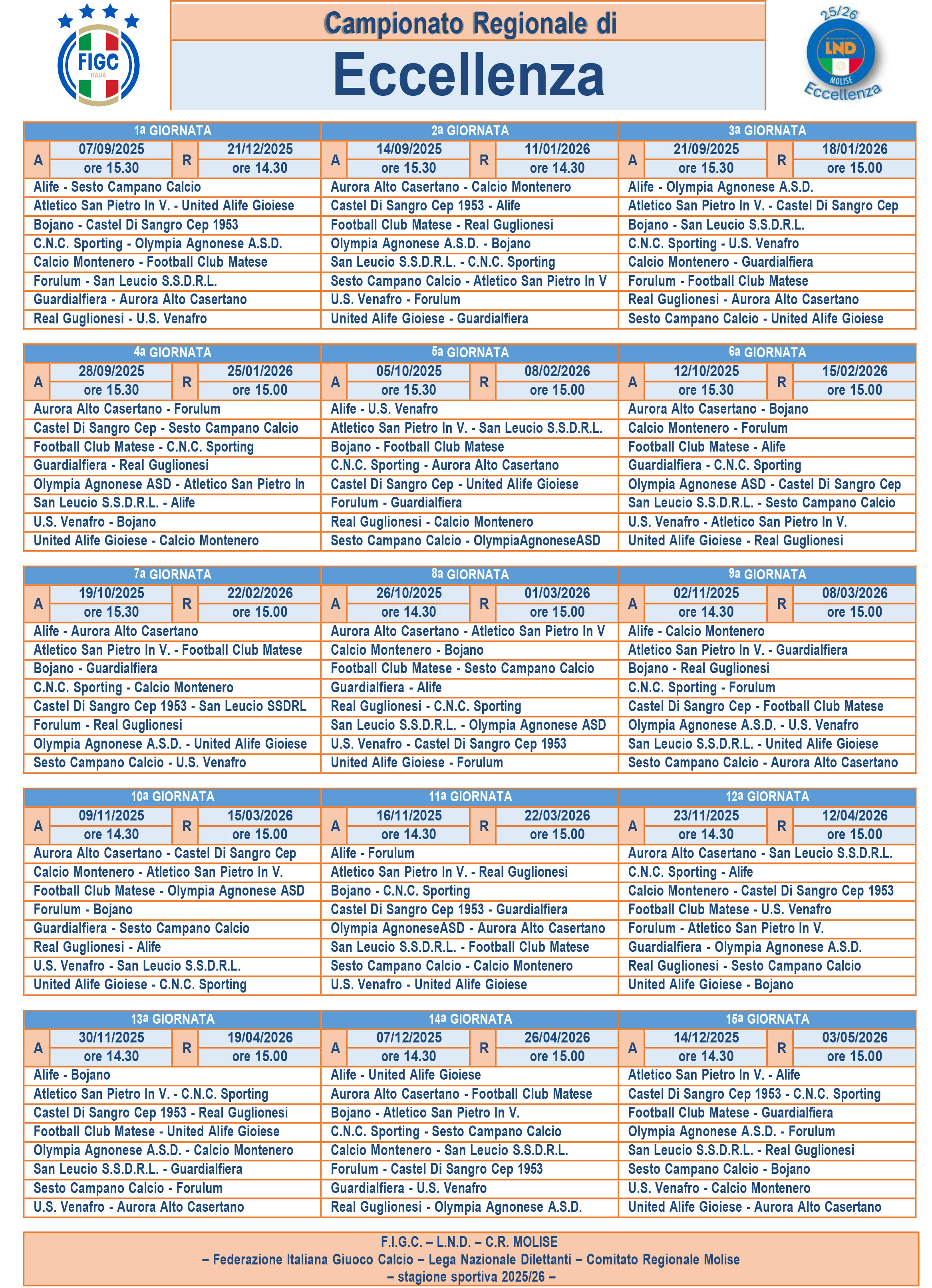 Nella gallery fotografica a margine dell'articolo scarica i calendari dei campionati regionale di Eccellenza e Promozione Molise.l