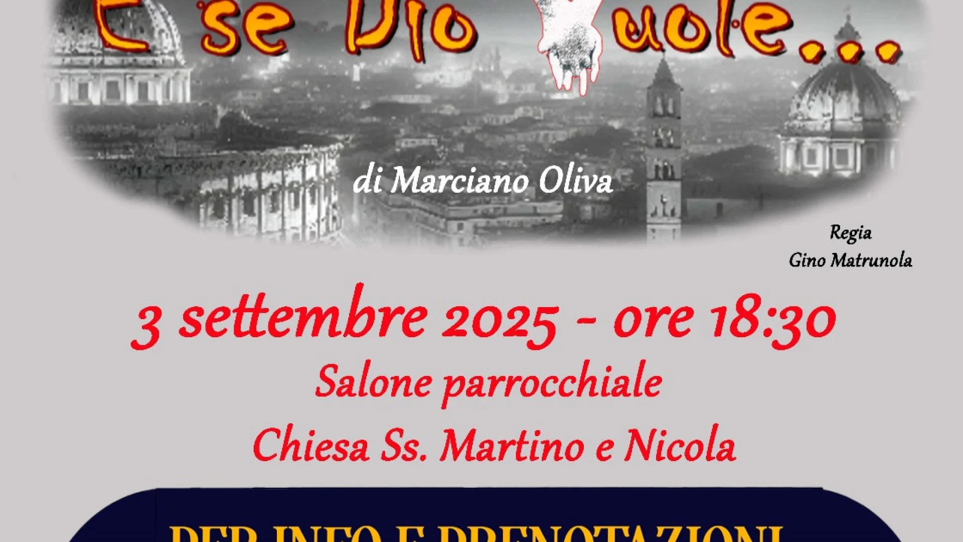 Nella gallery fotografica a margine dell'articolo la brochure ufficiale della commedia in due atti "E se Dio Vuole".