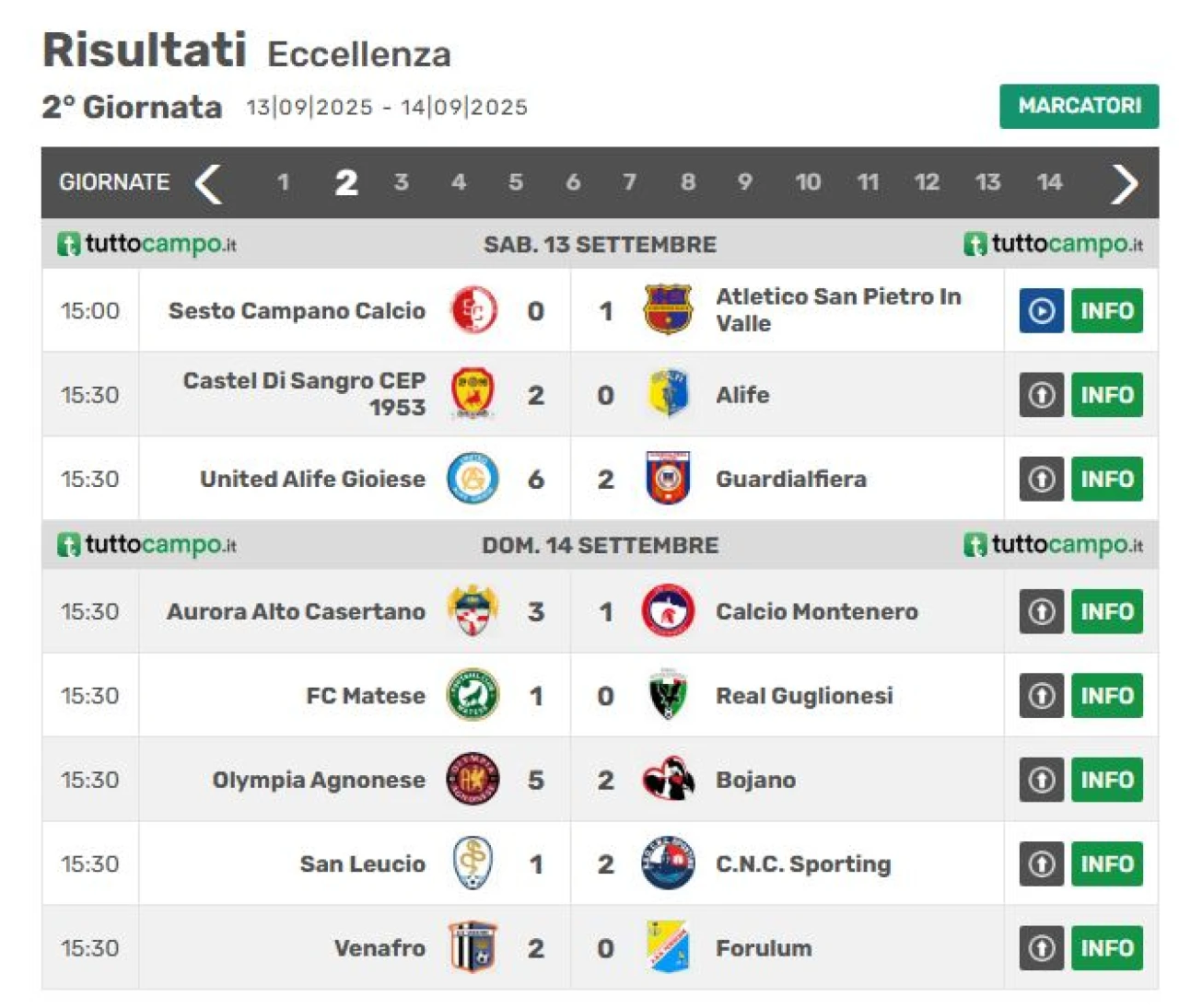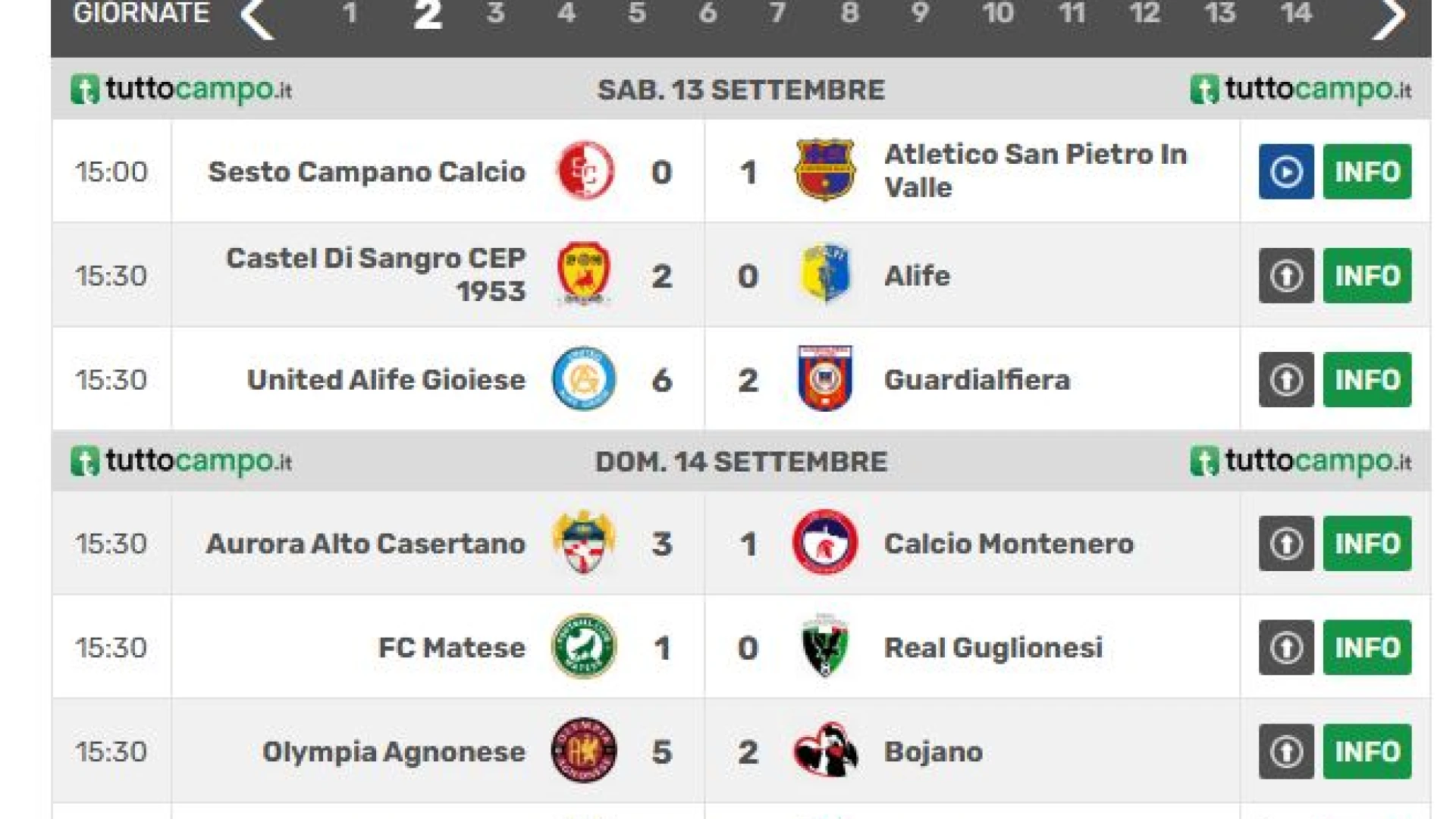 Calcio: risultati e classifiche aggiornati dei campionati di Serie D girone F, Eccellenza e Promozione Molise. Consulta le schermate. Sport