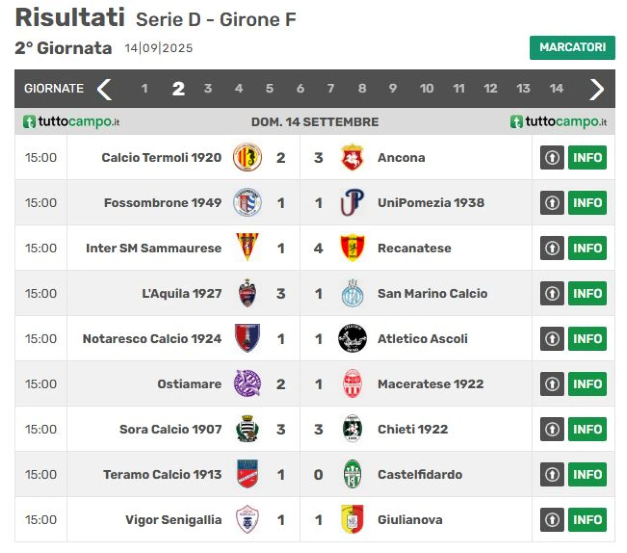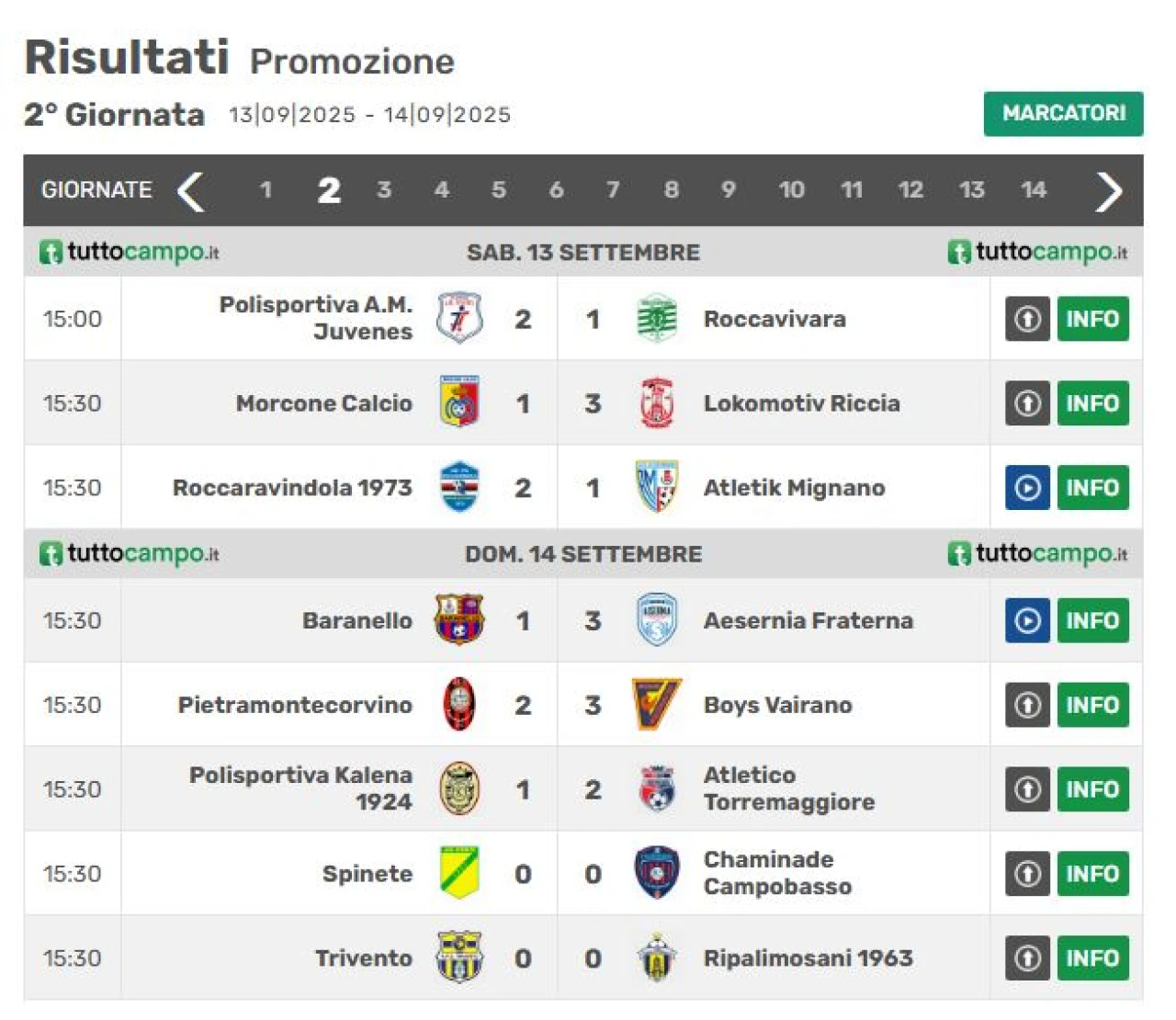 Calcio: risultati e classifiche aggiornati dei campionati di Serie D girone F, Eccellenza e Promozione Molise. Consulta le schermate.