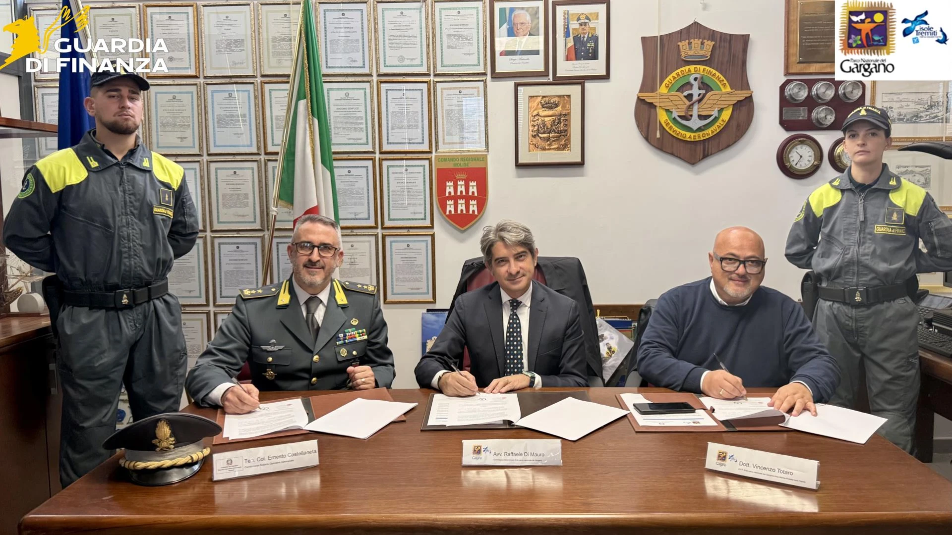 TERMOLI. . Venerdì 3 ottobre, presso la caserma della Guardia di finanza di Termoli, è stato siglato un accordo tra l'Ente Parco Nazionale del Gargano, ente gestore dell'Area Marina Protetta delle isole Tremiti, e il Reparto Operativo Aeronavale. L'accordo mira a rafforzare la collaborazione e il supporto reciproco per la vigilanza e conservazione dell’area marina protetta delle isole Diomedee attraverso un la presenza di un presidio della Guardia di finanza volto alla prevenzione e repressione delle attività illecite, ma anche di informazione e divulgazione della cultura del rispetto e della conservazione del meraviglioso ambiente marino dell’arcipelago.Il protocollo prevede una intensificazione dei servizi di sorveglianza e controllo del mare assicurati dalle unità navali del Corpo, durante i mesi estivi, a tutela dell’economia sana, dei fruitori del mare e della Zona di Tutela del Mare delle isole tremitesi.In questa ottica di collaborazione, l'Ente Parco fornirà un supporto logistico e l’accordo prevede anche uno scambio didattico formativo allo scopo di "individuare e consolidare le procedure operative volte ad incrementare l'efficacia delle azioni poste in essere", nonché un coordinamento sulle azioni da intraprendere per una corretta attuazione dei programmi.