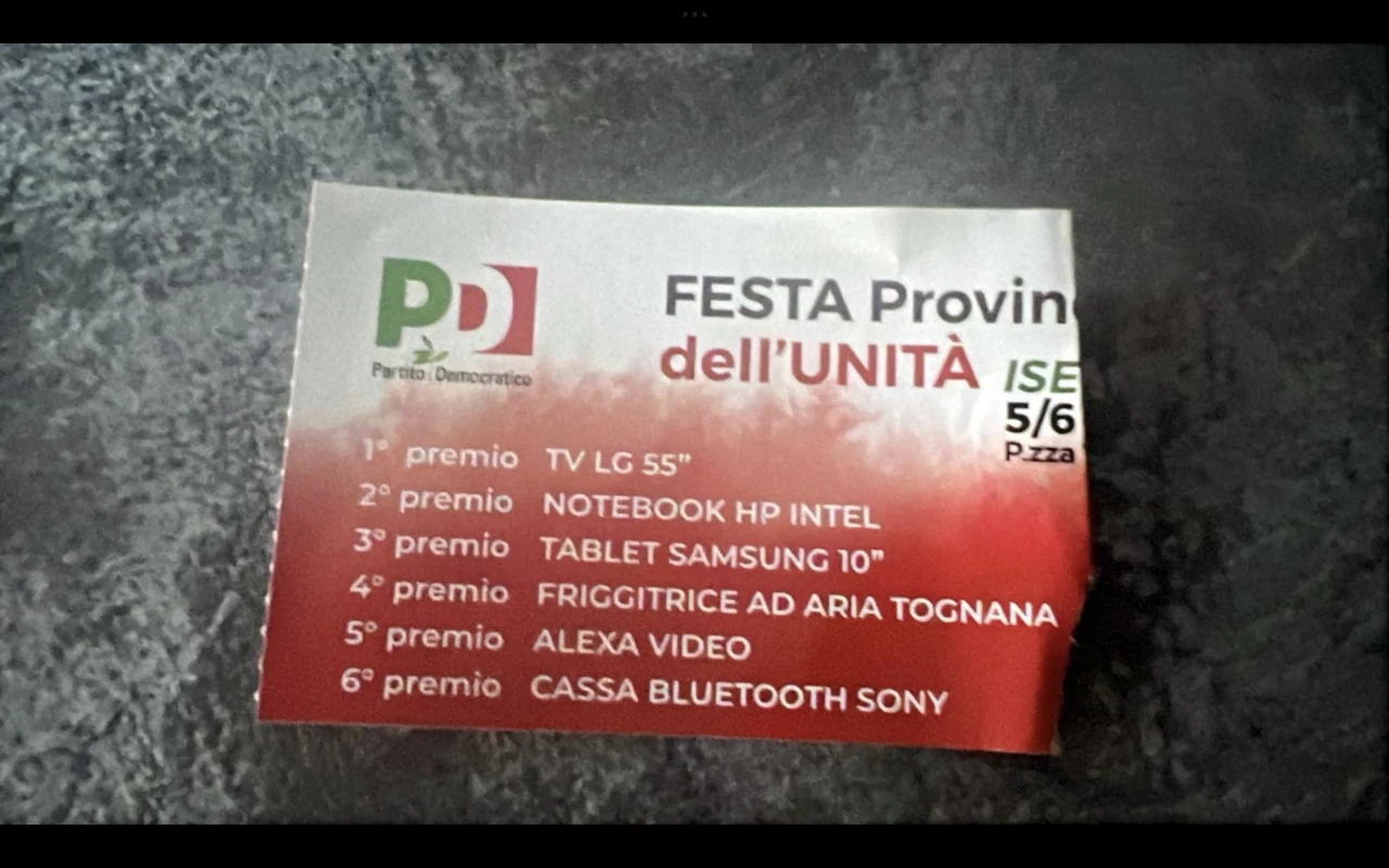 ISERNIA. Si e' conclusa lo scorso fine settimana la Festa Dell'Unita' edizione 2025 organizzata dalla Federazione PD Alto Molise. A corollario dell'evento politico l'estrazione dei numeri vincenti della lotteria con la quale sono stati messi in palio numerosi e diversi premi.