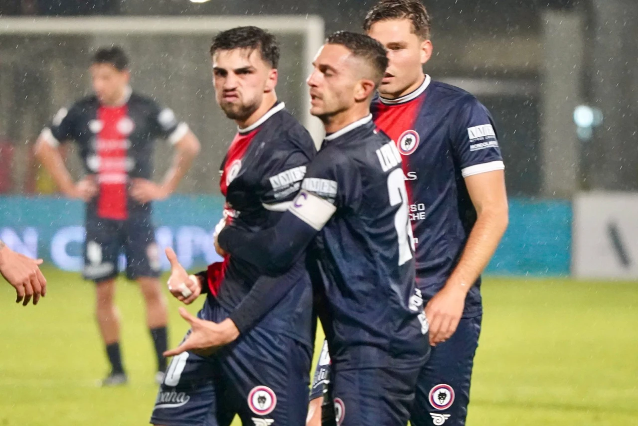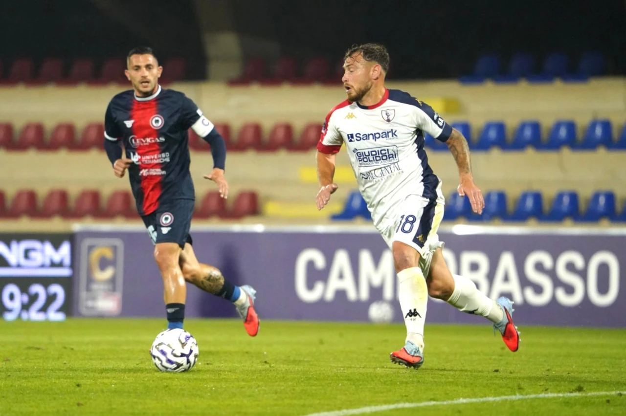 I rossoblù cominciano all’attacco, creando diverse occasioni da rete: il capitano va vicino al gol per tre volte (in una di queste bravo il portiere Cultraro a respingere), mentre Magnaghi ci prova in altre due circostanze. I Lupi protestano anche per un presunto tocco di mano in area, ma dopo il controllo al Football Video Support l’arbitro decide di non assegnare il rigore. Nel primo tempo, la Sambenedettese, si rende pericolosa solo con una punizione di Alfieri, che Rizzo blocca con qualche difficoltà. Nella ripresa, il Campobasso continua a spingere e crea ancora occasioni con Gala, che prima tenta di superare Cultraro in uscita e poi conclude in diagonale, e con Gargiulo, fermato ancora una volta dal portiere marchigiano. I Lupi controllano la partita, rischiando solo su un gol annullato a Eusepi per fuorigioco. Al 79’, però, arriva il meritato vantaggio: Gala, dopo una bella iniziativa di Martina sulla destra e con Padula bravo a lasciare scorrere il pallone, insacca con precisione, sbloccando il risultato. Poco prima erano entrati anche Cerretelli e Padula per Magnaghi e Gargiulo, senza modificare lo schieramento tattico. Sembra fatta, ma al 91’ arriva la beffa: Marranzino approfitta di un intervento non impeccabile di Rizzo e segna il gol dell’1-1, regalando un punto insperato alla Samb e togliendone due ormai quasi certi al Campobasso.