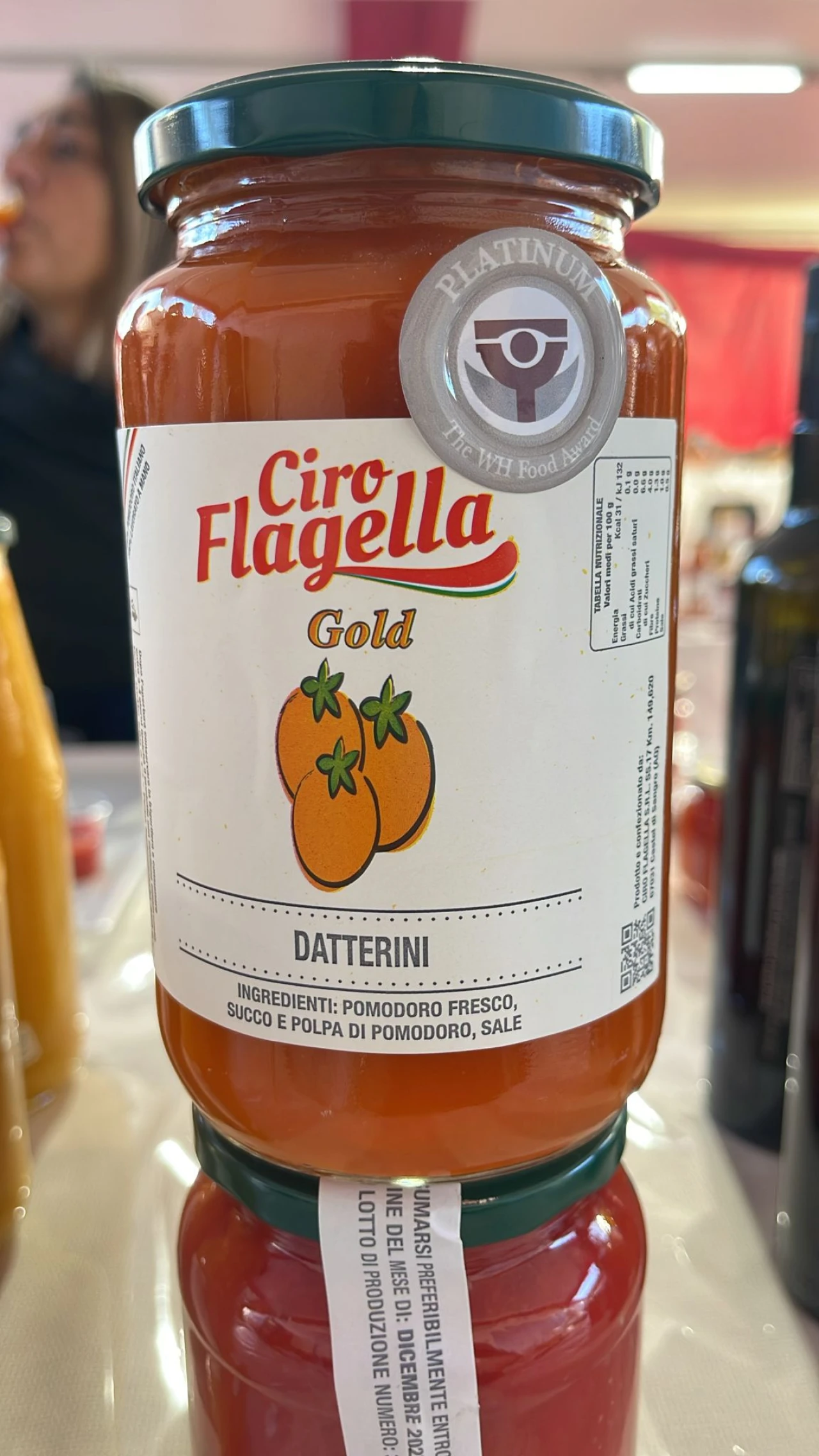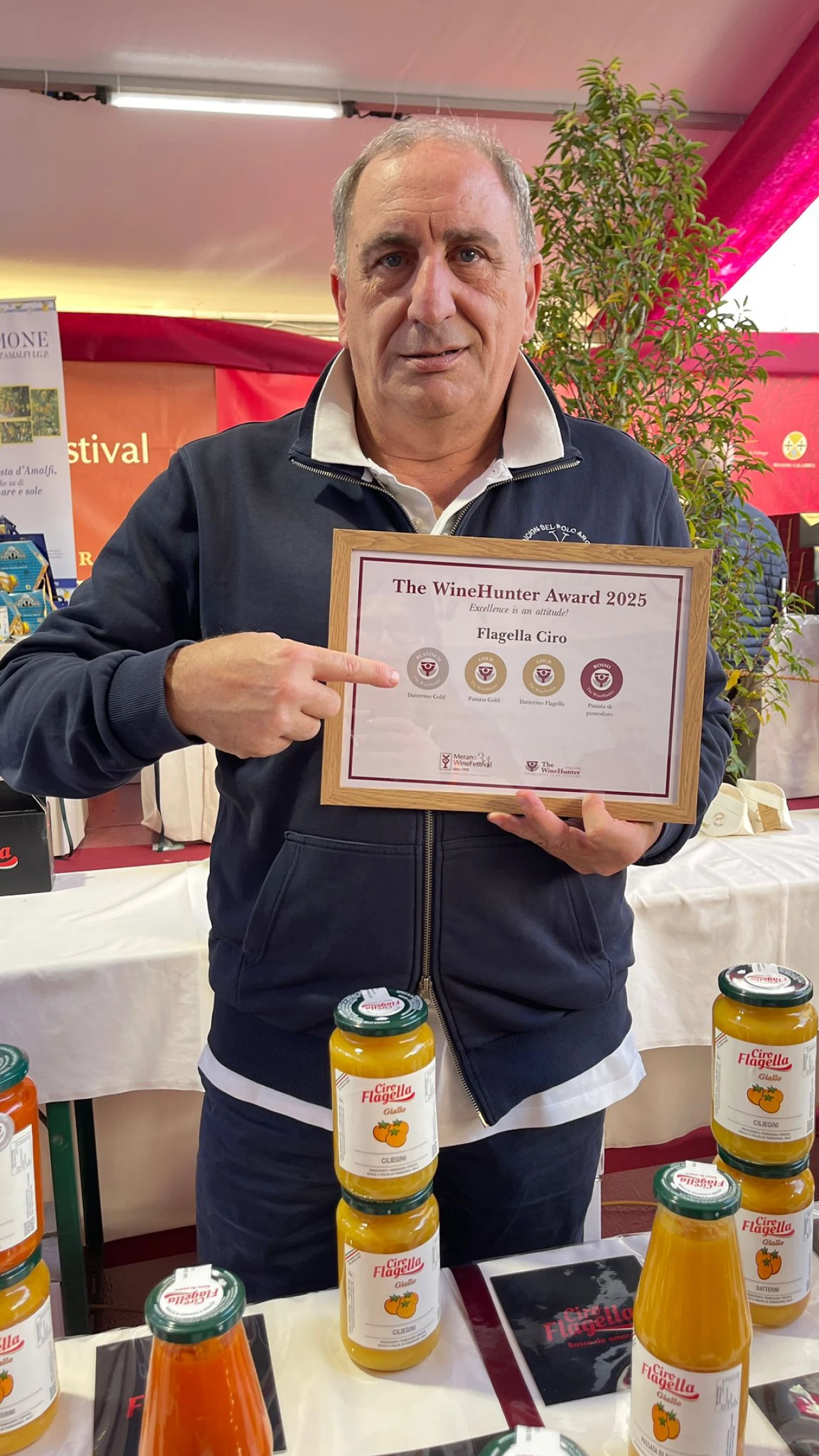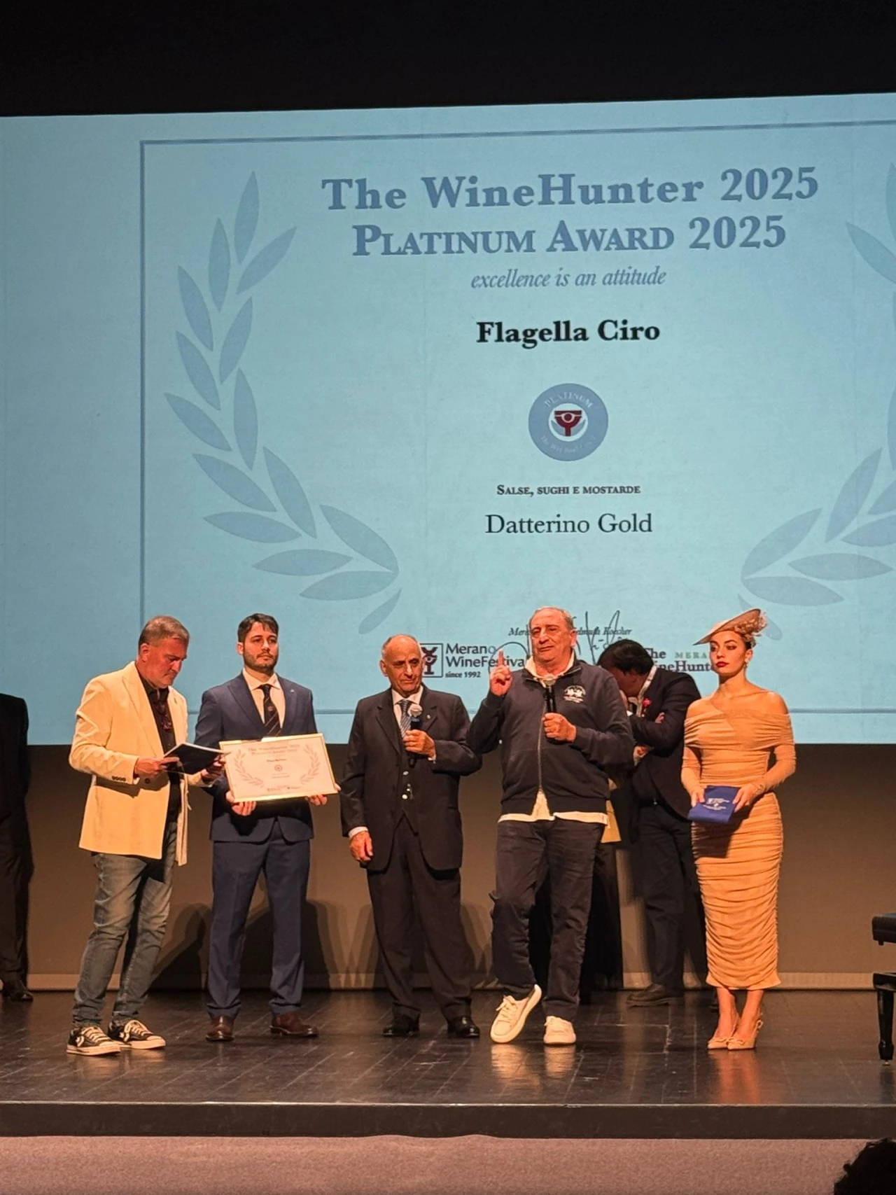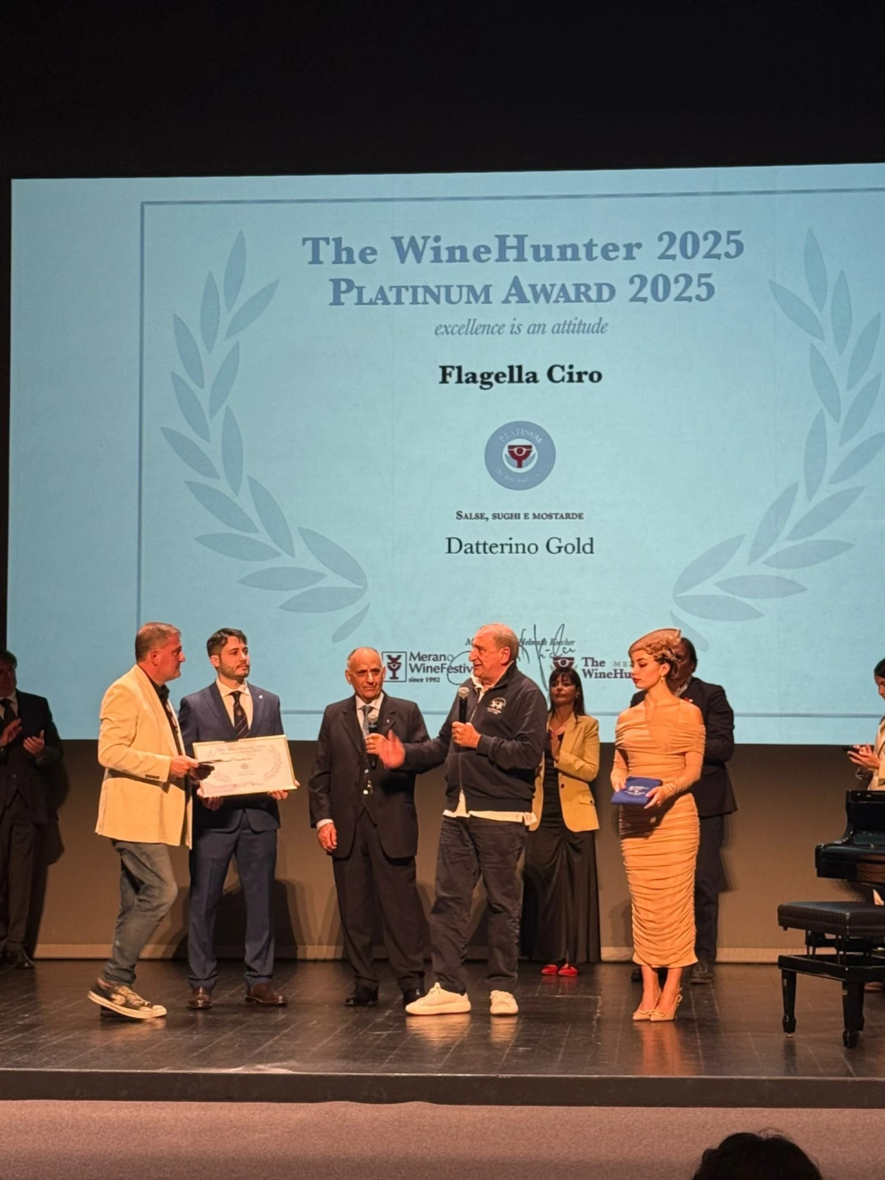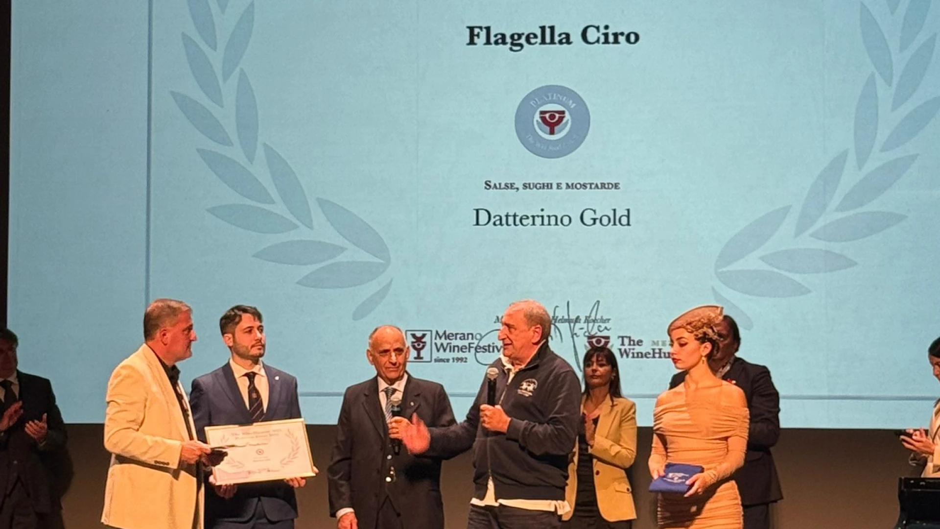 Una grande sorpresa in sala, infatti, l’unico abruzzese a ricevere attestato e riconoscimento per il suo prodotto e’ stato l’imprenditore di Castel Di Sangro Franco Flagella che ha visto il suo datterino gold conquistare il Premio Platinum. L’azienda Ciro Flagella, ormai, da anni, e’ dedita alla produzione di passate di pomodori e prodotti di altissima qualità che stanno regalando al territorio abruzzese importanti momenti di “gloria”. A ritirare il premio sul palco di Merano e’ stato proprio Franco Flagella che ha ribadito l’importanza della qualità delle produzioni dell’azienda Ciro Flagella. Produzioni che ormai conquistano tutti i tipi di mercato.