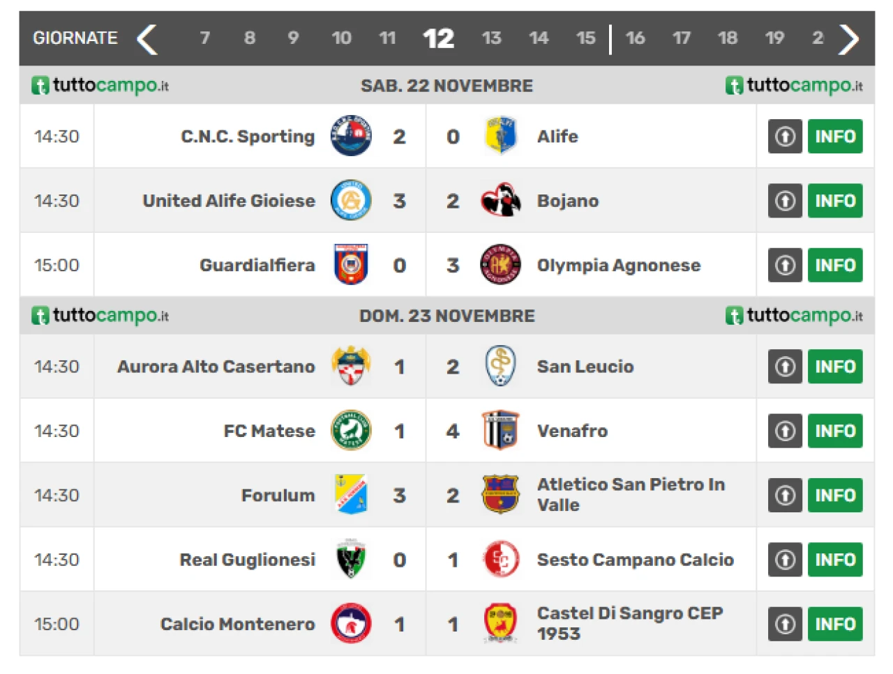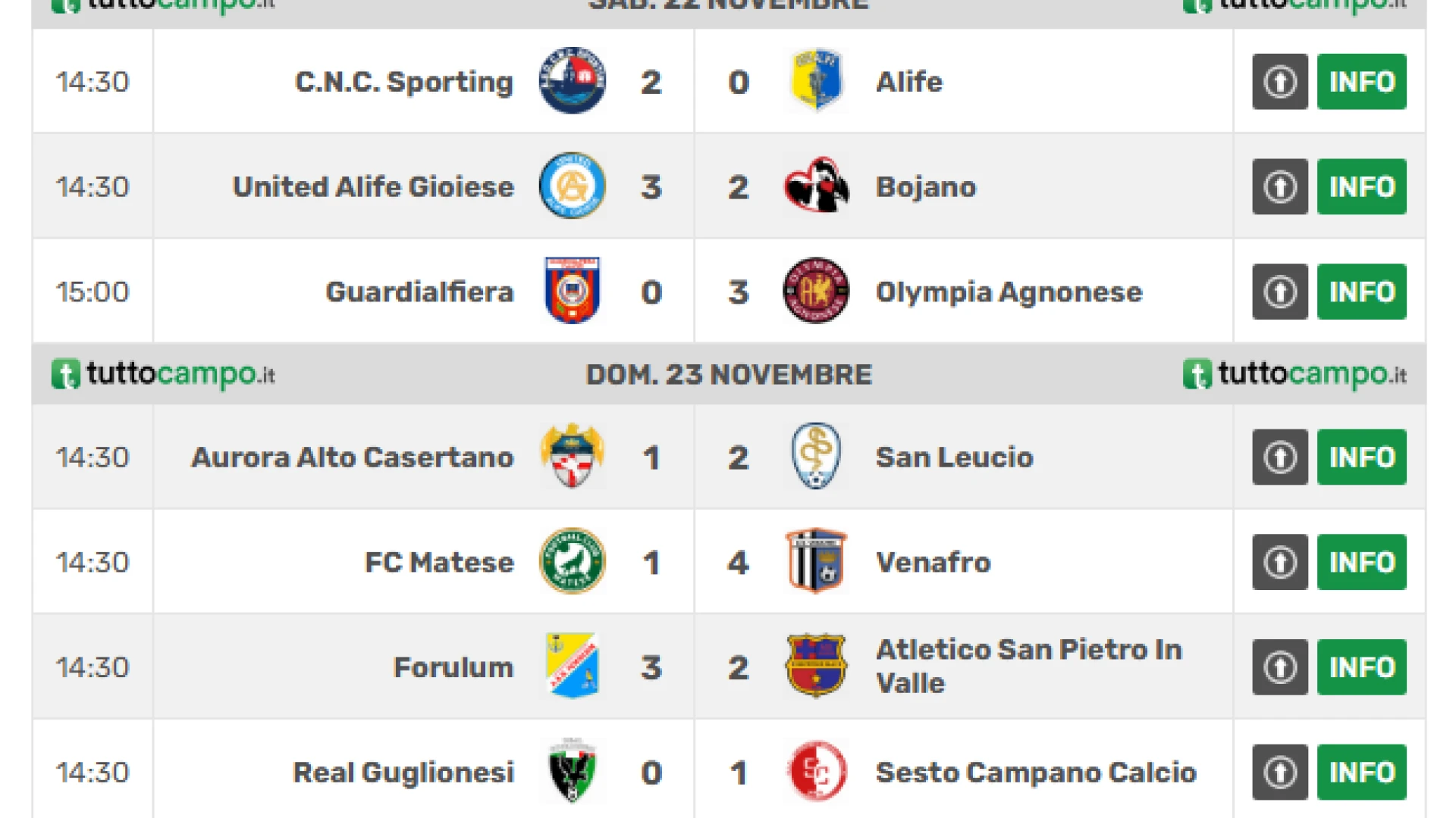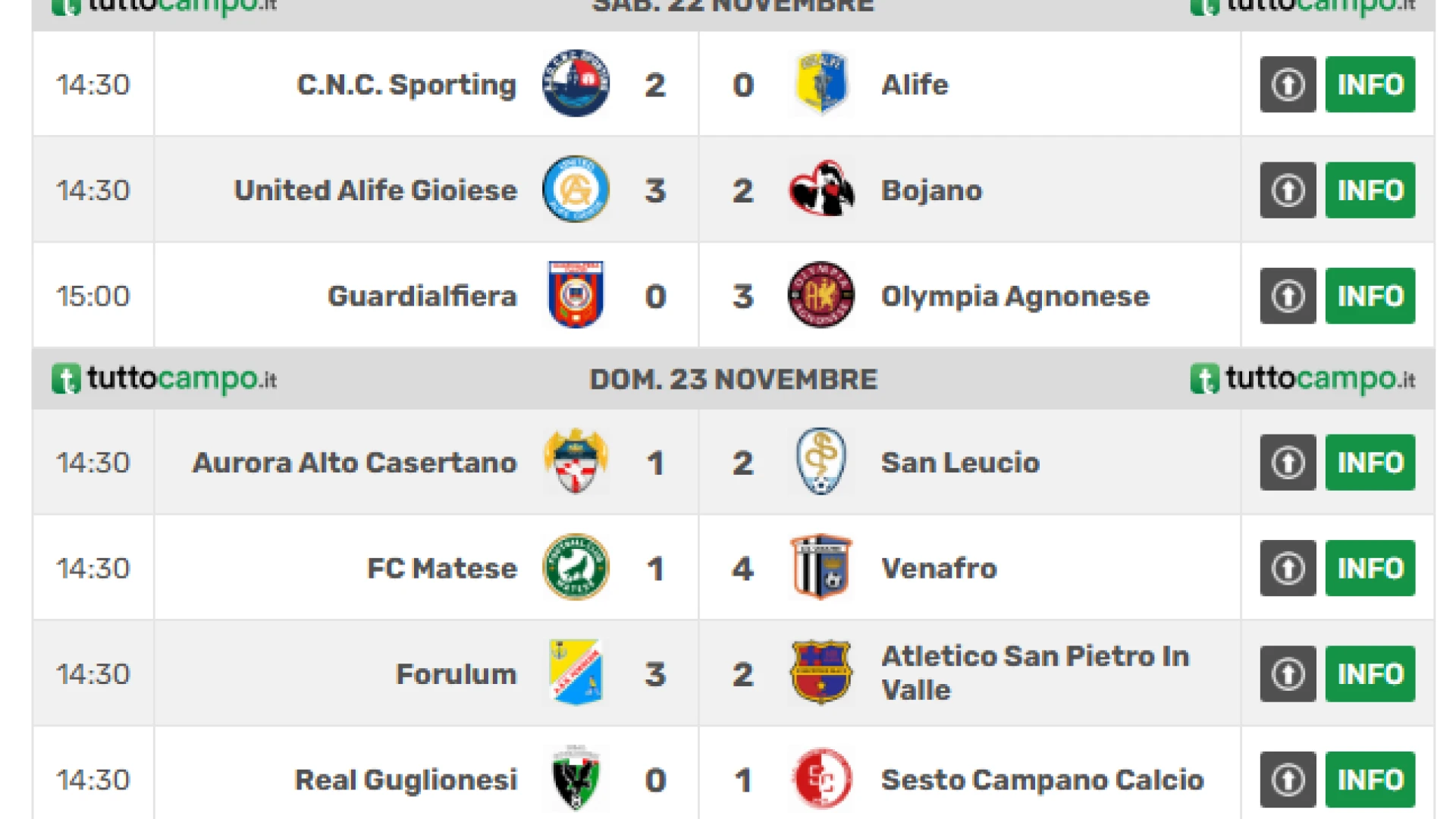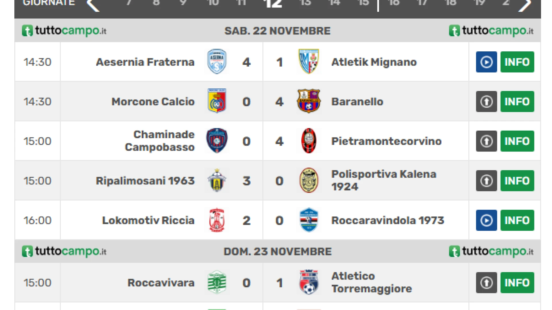 Calcio: serie D girone F, Eccellenza e Promozione Molise. Risultati e classifiche aggiornati dopo l'ultimo turno di campionato. Consulta le schermate.