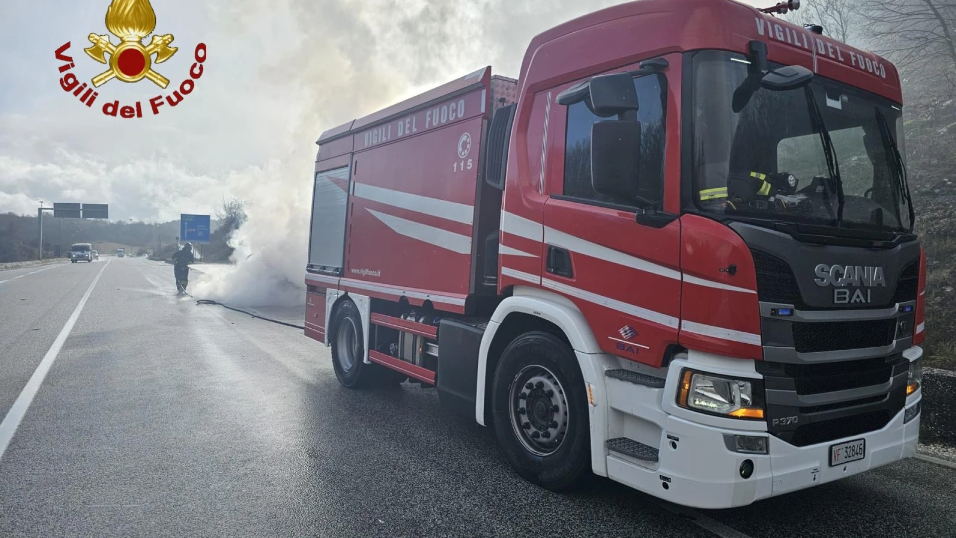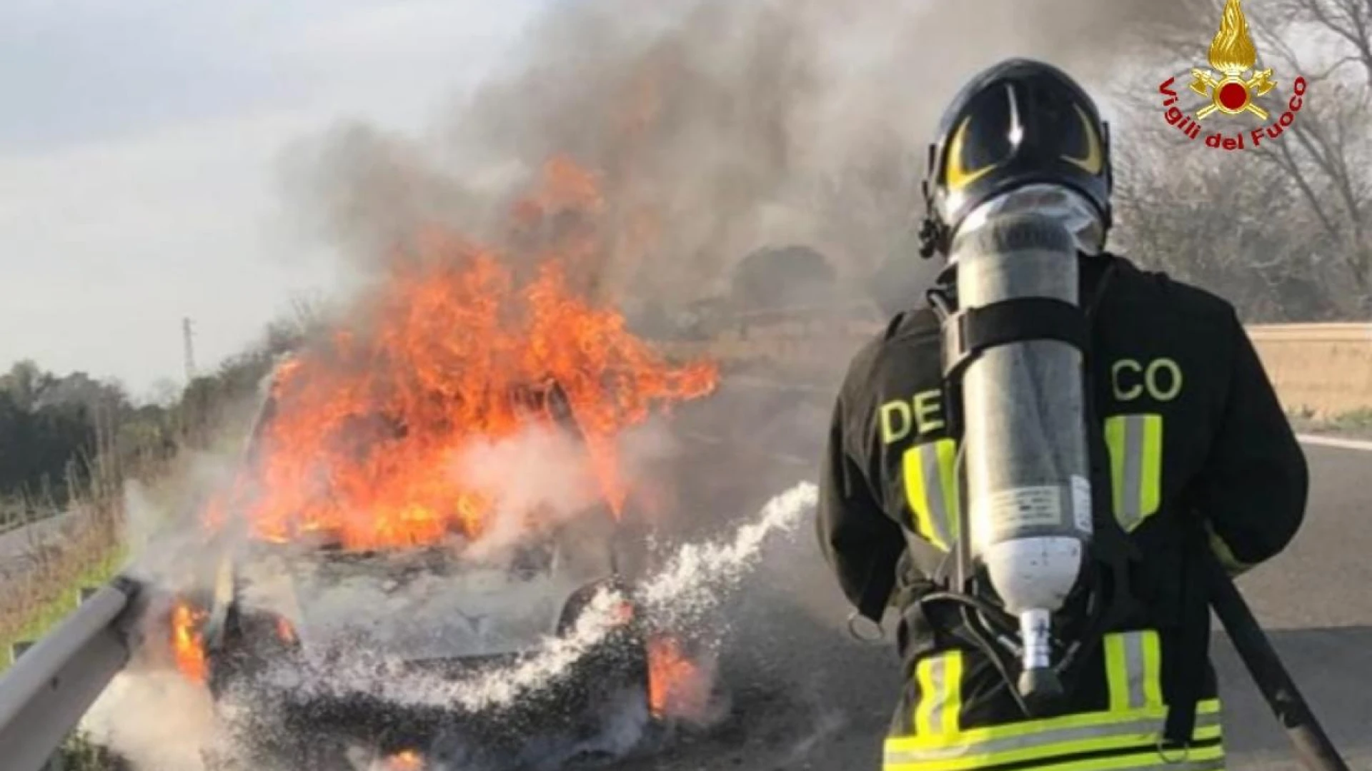 Rionero Sannitico/Castel Di Sangro. Un intervento dei Vigili del Fuoco del distaccamento di Castel Di Sangro è attualmente in atto sulla statale 17 proprio al confine tra Abruzzo e Molise dove questa mattina una utilitaria ha preso completamente fuoco. Ancora da accertare le cause dell'incendio, probabilmente un guasto meccanico al mezzo. Sul posto Vigili del Fuoco e Carabinieri. Illesi i passeggeri del mezzo. Red. Cronaca.