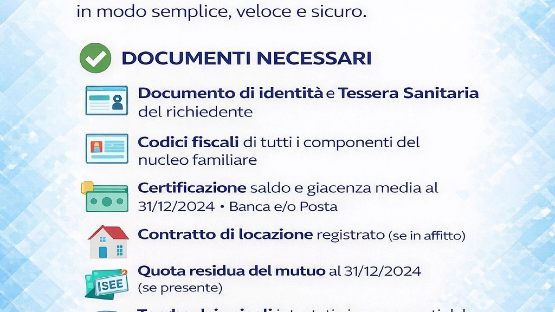 ✔ Contratto di affitto o mutuo (se presenti)