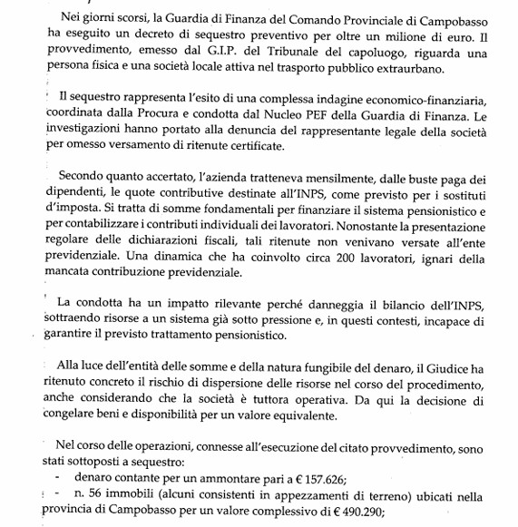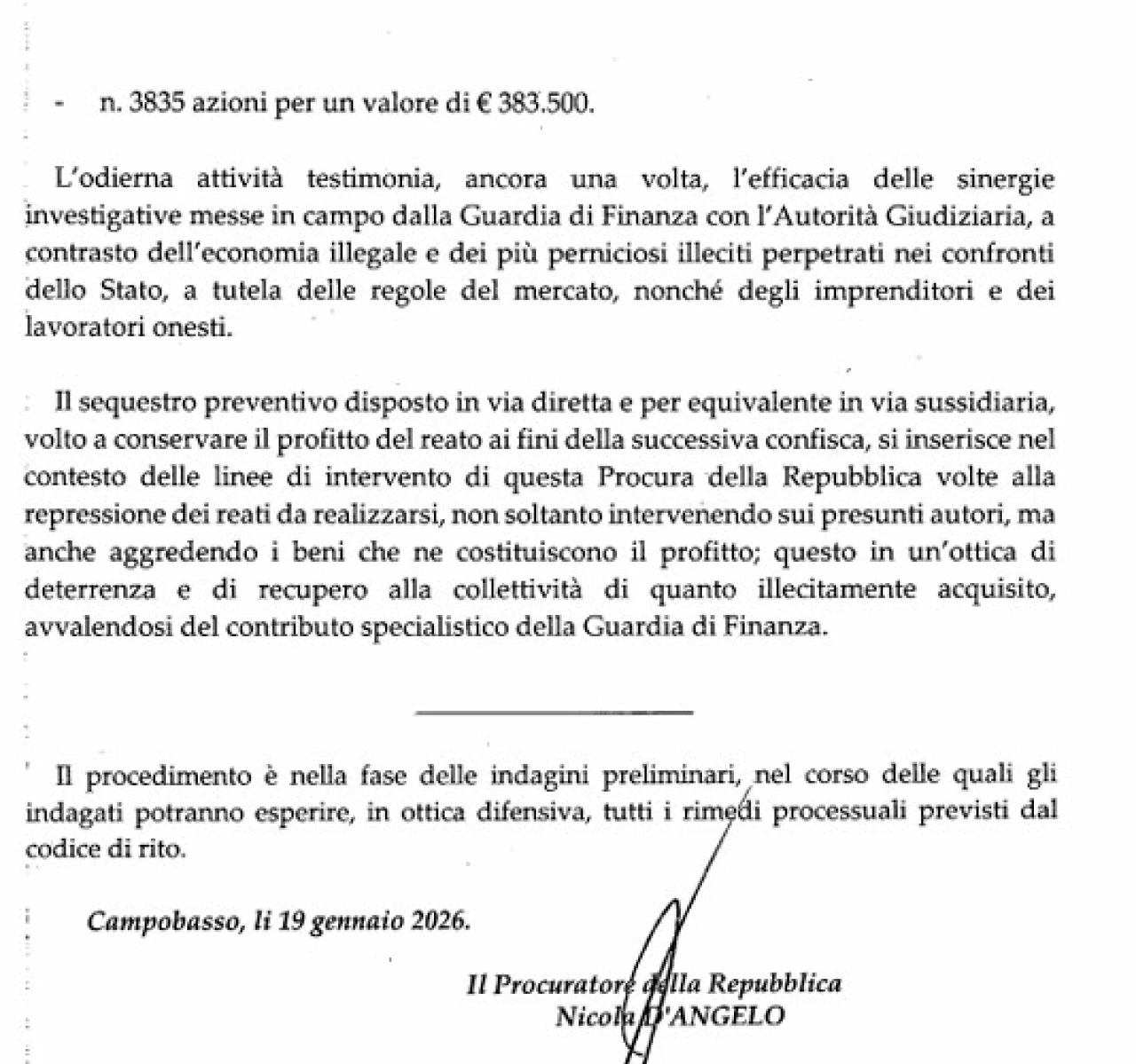 LEGGI QUI IL COMUNICATO DELLA PROCURA DI CAMPOBASSO.