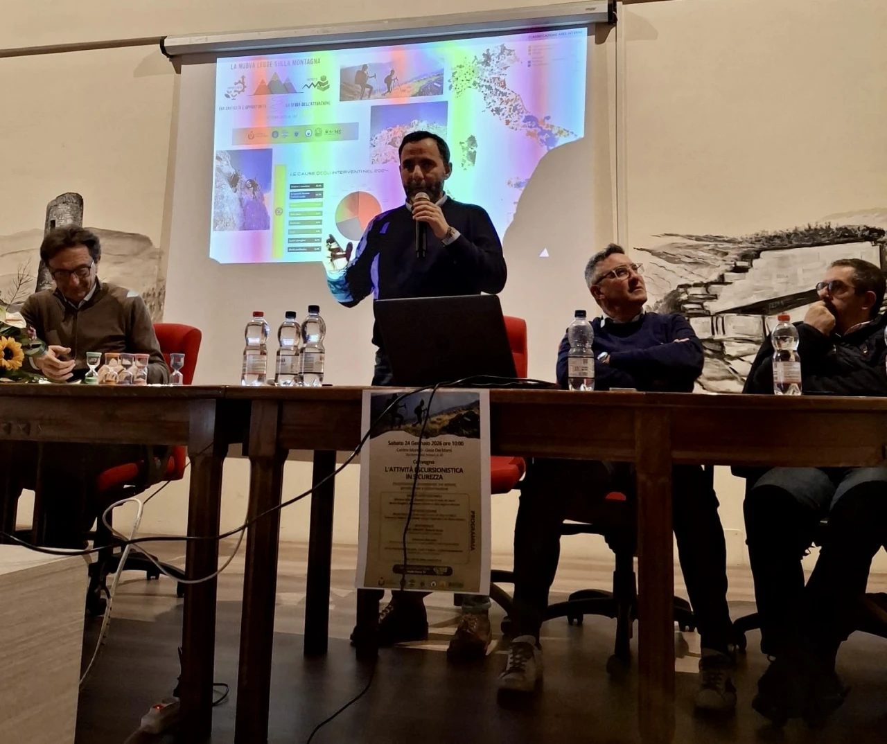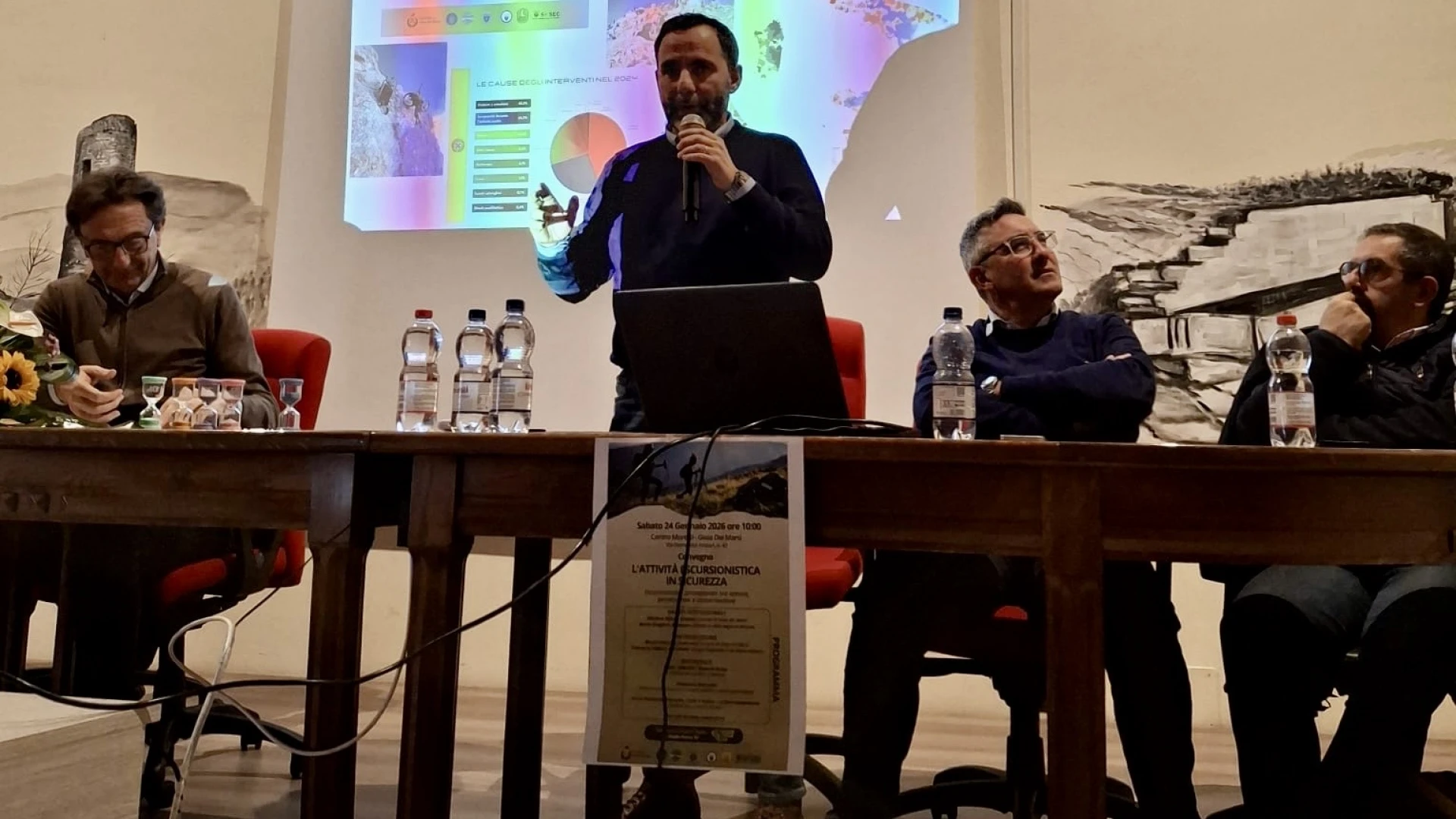 GIOIA DEI MARSI - Un confronto partecipato e di alto profilo tecnico ha animato ieri il Centro culturale di Gioia dei Marsi (L’Aquila), dove si è svolto il convegno dedicato alla sicurezza in montagna, promosso dall’amministrazione comunale e organizzato dall’assessore comunale Nicola Antonelli in collaborazione con il Cai - Sezione Vallelonga “Coppo dell’Orso”. L’iniziativa, come ribadito dal sindaco di Gioia dei Marsi, Gianluca Alfonsi, “ha riunito attorno allo stesso tavolo relatori qualificati, che hanno illustrato a un pubblico numeroso e attento gli aspetti tecnici e normativi legati alla sicurezza dei sentieri, tema centrale per un territorio che fonda gran parte della propria identità e delle proprie prospettive di sviluppo sulla fruizione consapevole dell’ambiente montano”.