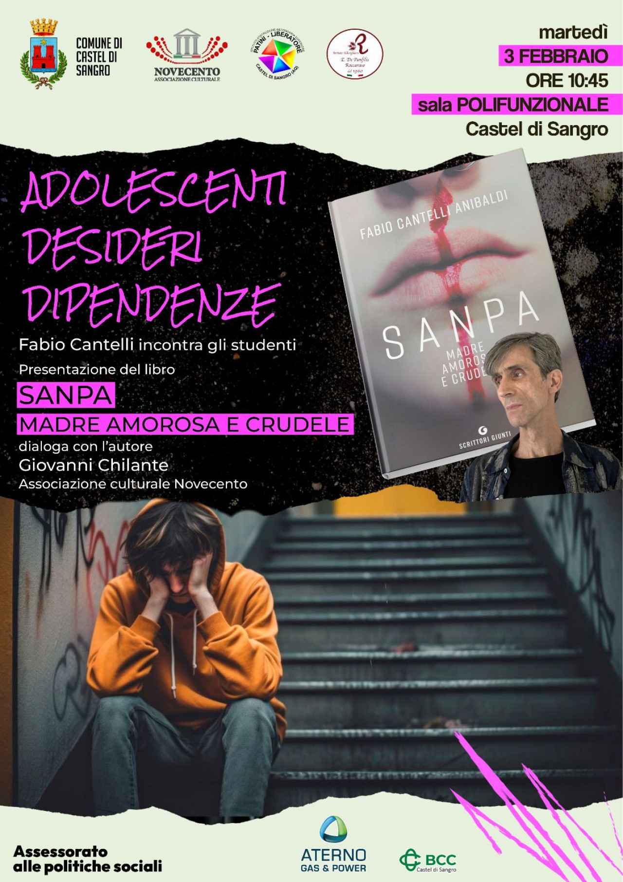 CASTEL DI SANGRO - Si rinnova anche quest’anno la collaborazione tra il Comune di Castel di Sangro (L'Aquila) e l’Associazione culturale Novecento ETS, indirizzata agli studenti degli Istituti scolastici superiori dell’Alto Sangro. Martedì 3 febbraio alle ore 10,45 presso la Sala Polifunzionale di Castel di Sangro, Fabio Cantelli incontrerà oltre centocinquanta ragazzi sul tema Adolescenti, desideri, dipendenze. Un momento significativo incentrato sulle riflessioni rivolte al delicato rapporto tra crescita, fragilità emotiva e forme di dipendenza.