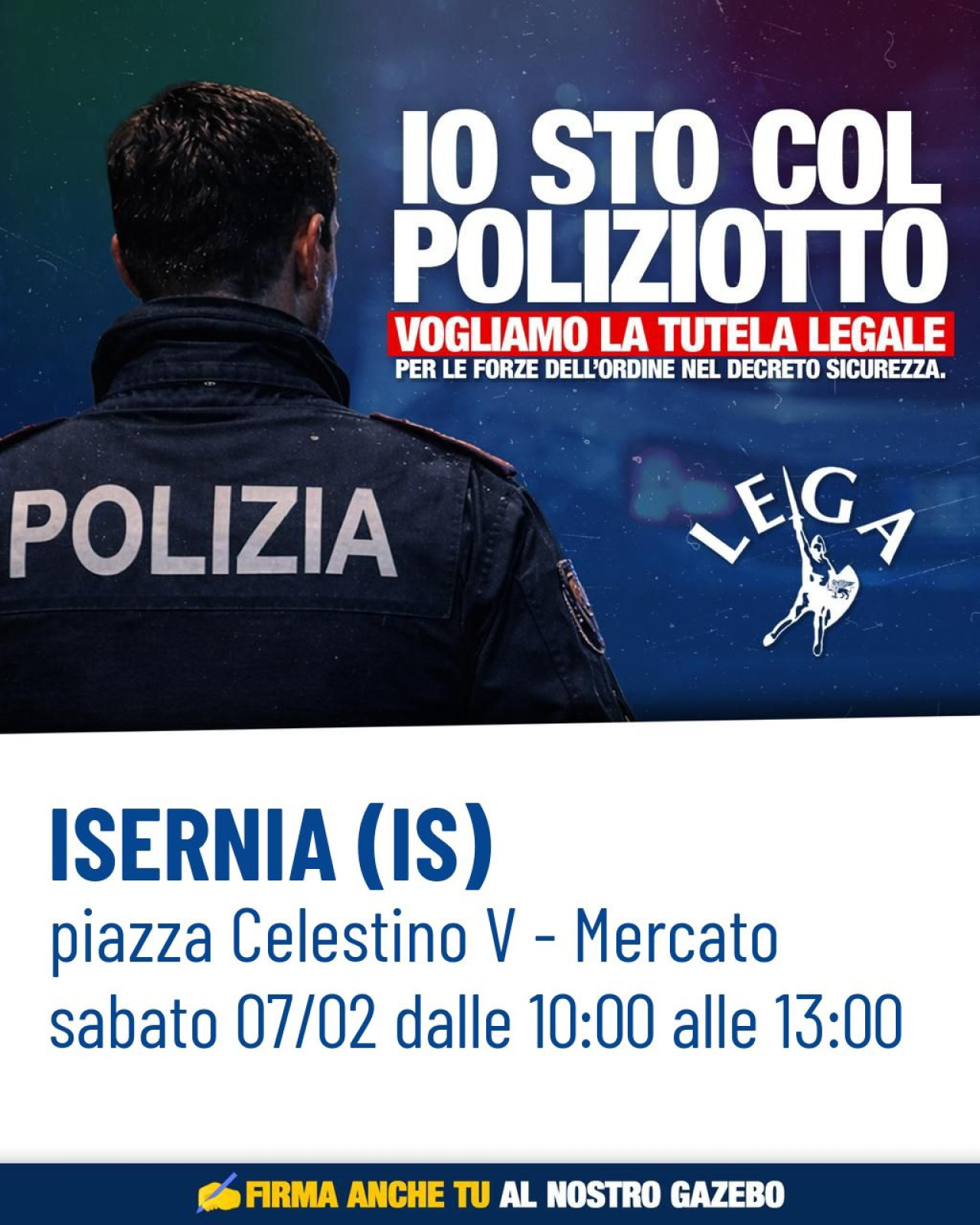 Lo ha detto Aldo Patriciello, eurodeputato e coordinatore regionale della Lega, annunciando la presenza del Carroccio nelle piazze di Isernia (sabato 7 febbraio, dalle ore 10:00 alle 13:00, Piazza Celestino V) e Termoli (domenica 8 febbraio, dalle 10:00 alle 13:00, Piazza XX Settembre) per raccogliere firme a sostegno delle forze di polizia, dopo le violenze accadute alla manifestazione di Torino, e per spiegare ai cittadini le novità inserite all’interno dell’ultimo decreto sicurezza approvato in queste ore dal Governo.
