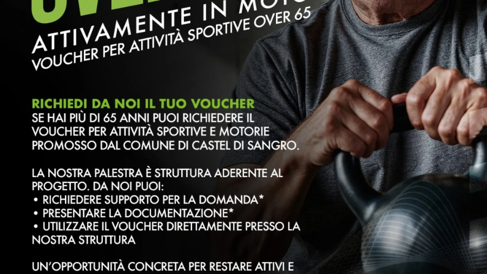 REDAZIONALE / CASTEL DI SANGRO-AQ. Presso la palestra Sport Village Fitness Club in Piazzale Prato Cardillo nuova ed importante iniziativa dedicata al movimento e soprattutto alla pratica sportiva da svolgere in terza età. Entro il 28 febbraio 2026 gli interessati potranno aderire al progetto OVER+65 Attivamente in moto che consente l’attivazione di un voucher per attività sportive over 65. Il voucher puo’ essere richiesto se hai piu’ di 65 anni. Lo strumento concederà diritto alla pratica in struttura di attività sportive e motorie. Sport Village Fitness Club aderente al progetto offrirà: