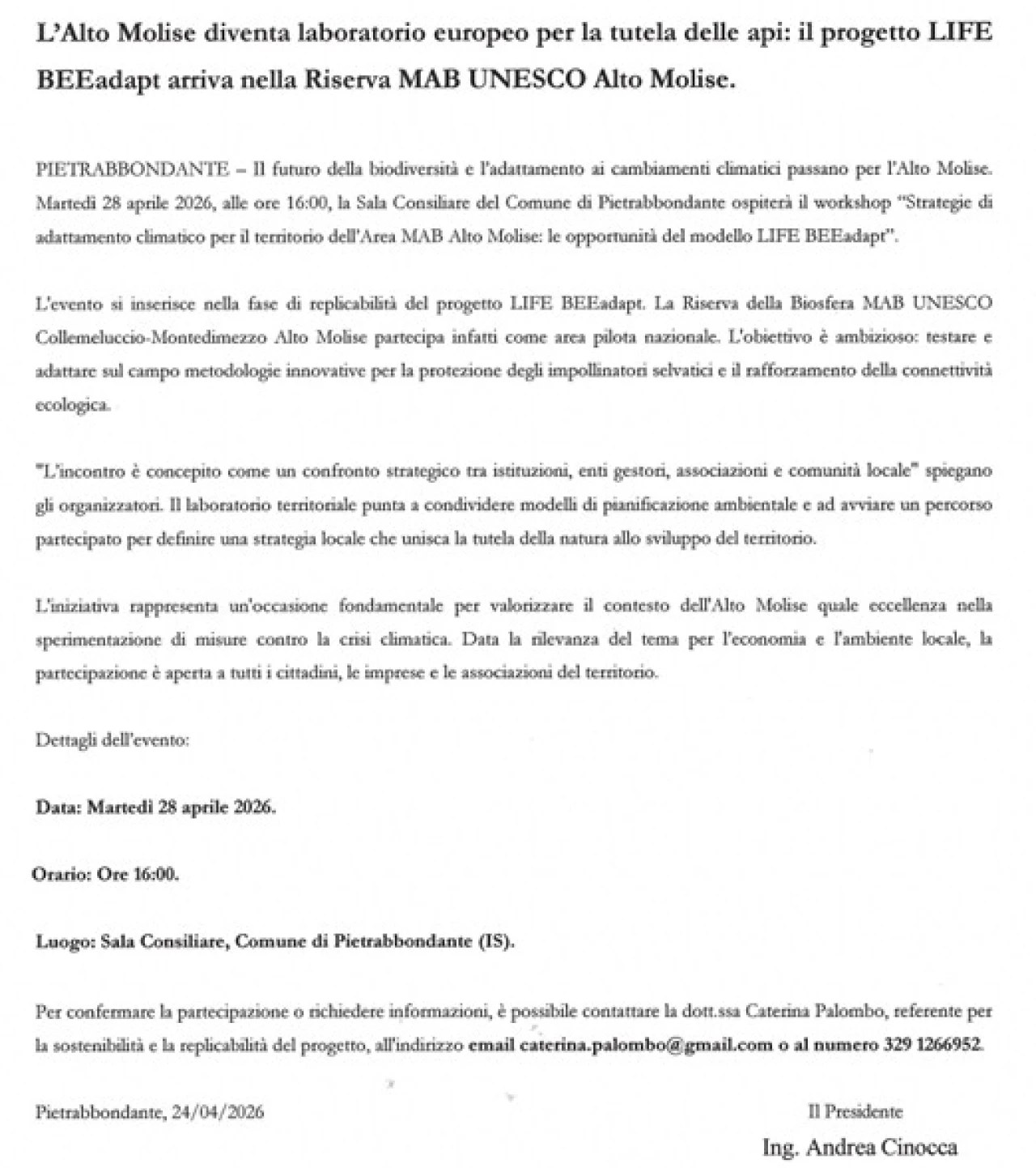 Castel del Giudice (IS), 23 Aprile 2026 - Sindaci, associazioni e regioni a confronto, per una gestione forestale innovativa...