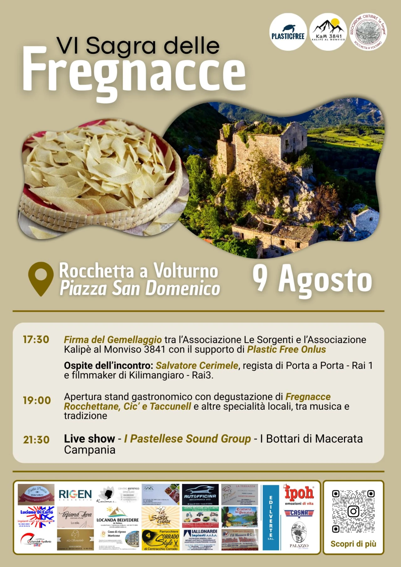 L’ASSOCIAZIONE LE SORGENTI Fondata nel 1998, l’Associazione Le Sorgenti è una delle realtà storiche e più attive del territorio. Si occupa di promuovere cultura, ambiente e identità locale. La Sagra delle Fregnacce rappresenta un momento centrale di socialità e valorizzazione del territorio.