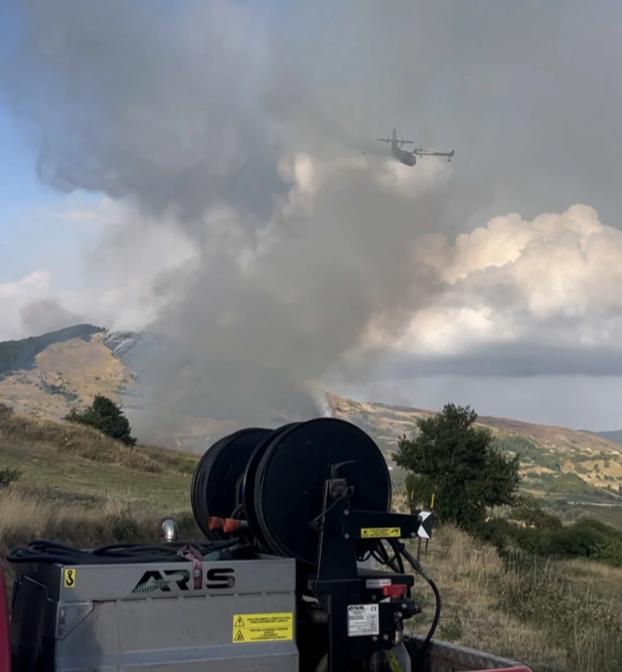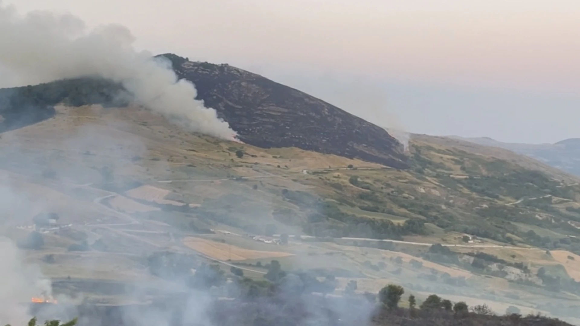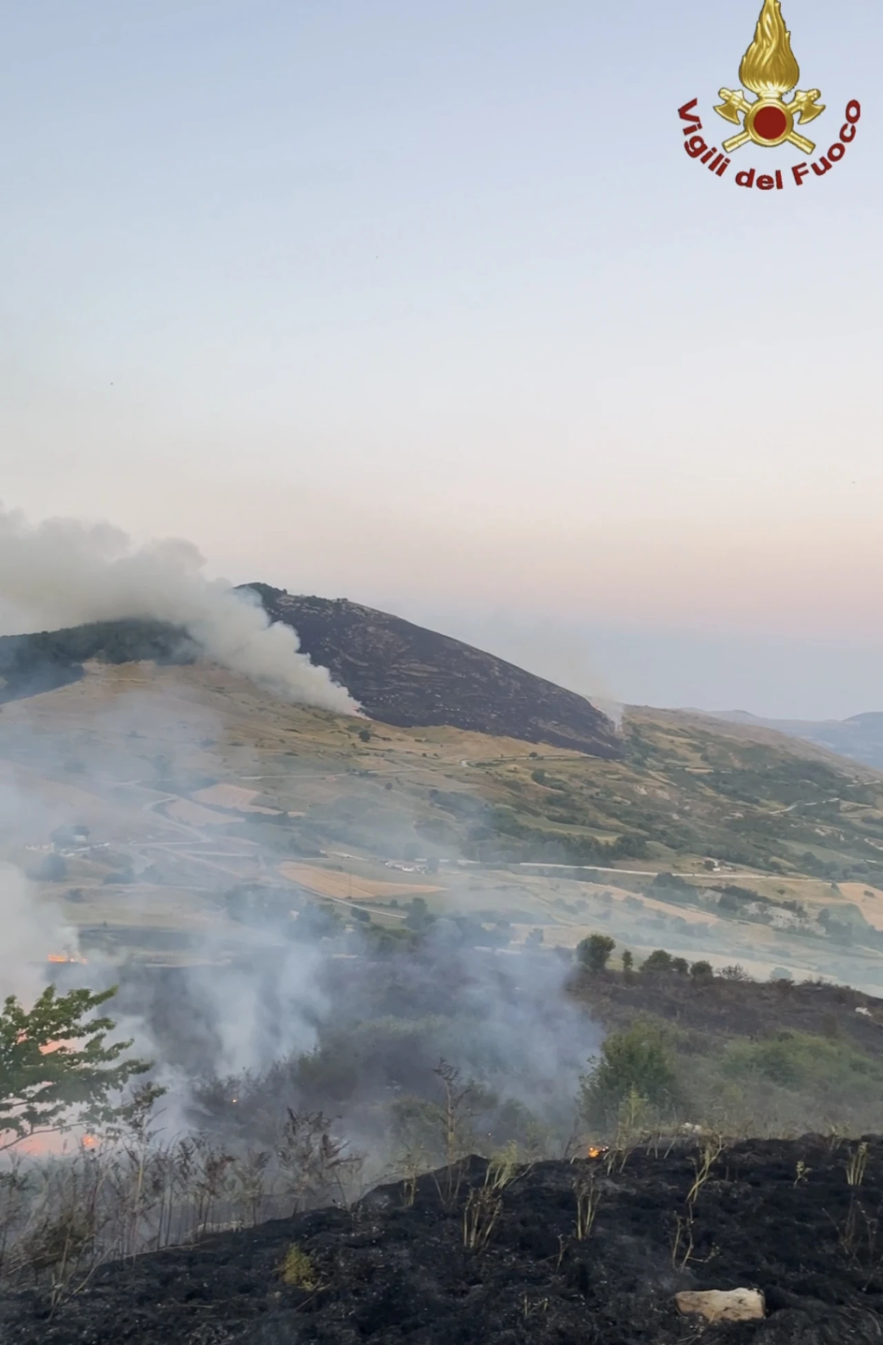 Agnone. Nel primo pomeriggio del 22 luglio, vasti incendi hanno interessato le campagne di Agnone (IS), sviluppandosi su due principali fronti: in località Macchie e nell’area di Sant’Onofrio, al confine con il comune di Capracotta.Le fiamme, alimentate dal vento e dalla vegetazione secca, hanno già devastato decine di ettari di terreno. L’intervento tempestivo dei Vigili del Fuoco è stato fondamentale per cercare di contenere l’avanzata dei roghi. Sul posto sono state inviate numerose squadre da terra, coordinate dal Comando provinciale di Isernia, con il supporto aereo, durante le ore diurne, di più lanci effettuati da Canadair.