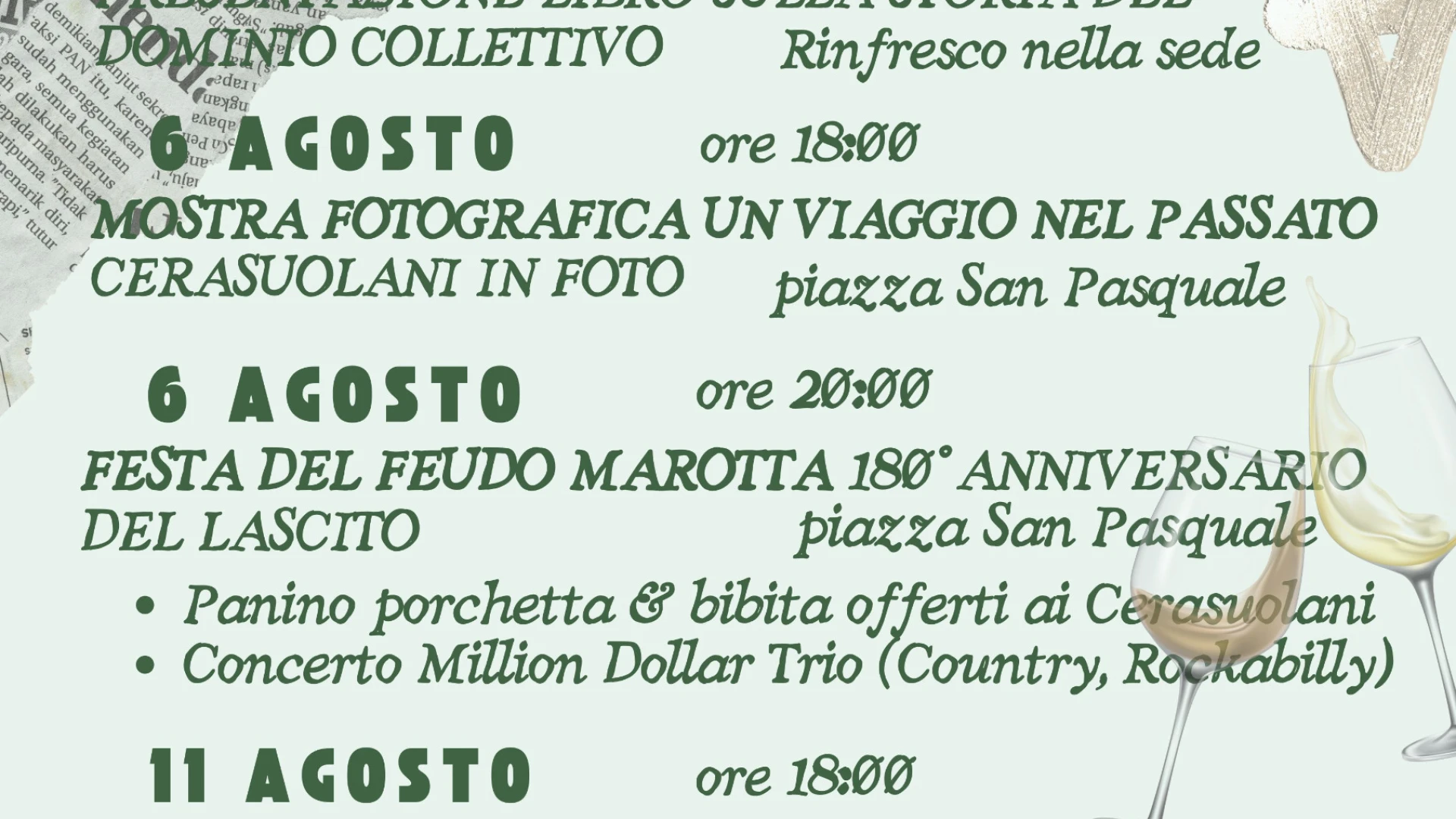 FILIGNANO-LOCALITA' CERASUOLO. Sono numerosi gli eventi promossi per l'estate 2025 dal locale Dominio Collettivo. Eventi, sopratutto di carattere ambientale che andranno avanti fino al prossimo 13 agosto.