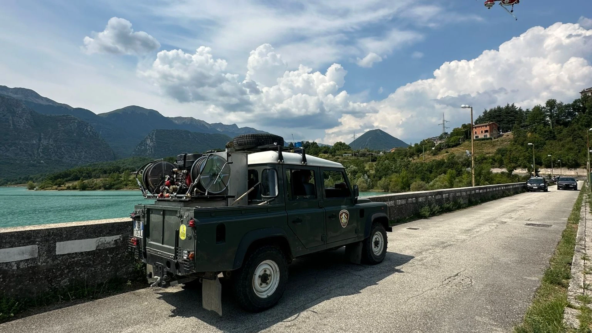 Rocchetta a Volturno.. Ferragosto di fuoco nell'Alta Valle del Volturno. A fuoco Monte Castelnuovo nel territorio di Rocchetta a Volturno nel pieno del Pnalm, Parco Nazionale d'Abruzzo, Lazio e Molise. Tanta la curiosità dei bagnanti del lago di Castel San Vincenzo che in queste ore stanno assistendo alle operazioni di spegnimento effettuate sul lago da un apposito elicottero. Il mezzo che sta caricando acqua nel bacino lacustre sta effettuando vari lanci sul monte Castelnuovo.