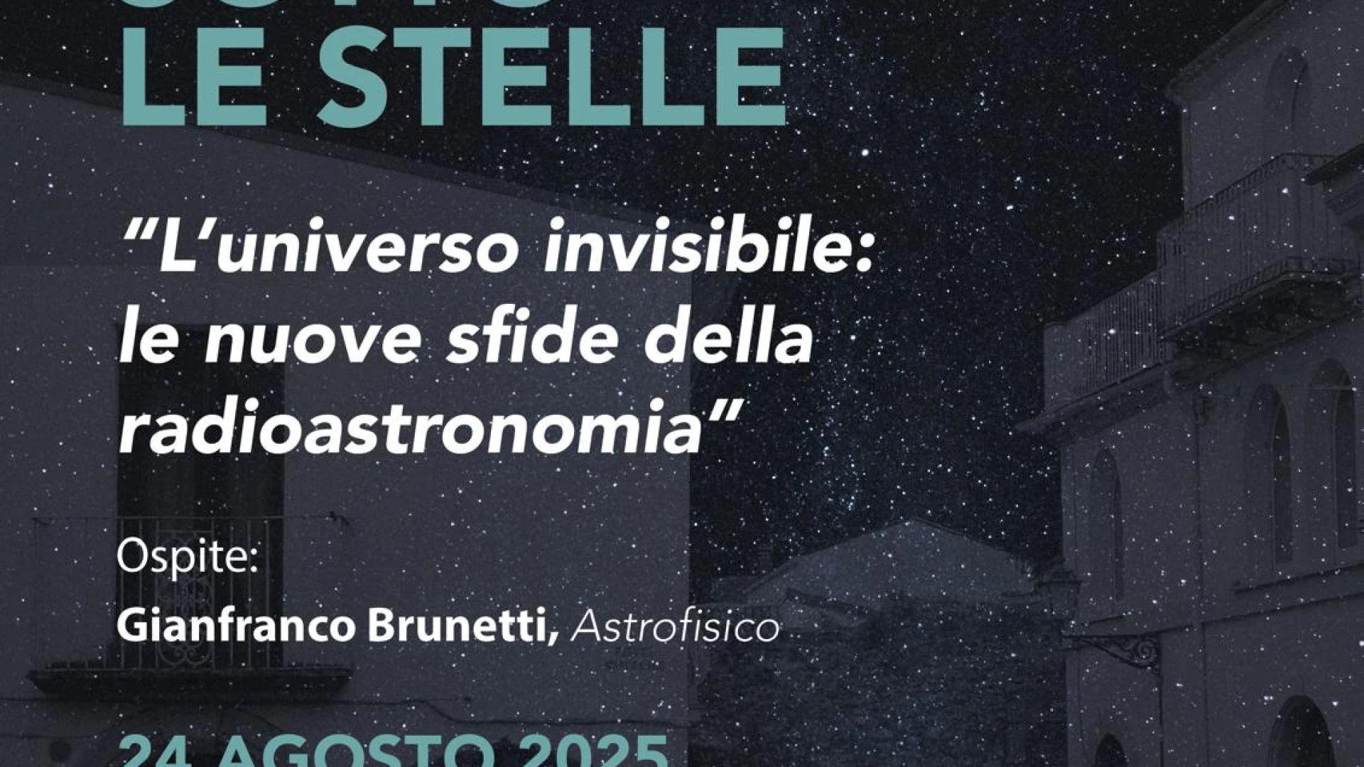 ISERNIA. Domenica 24 agosto, alle ore 21.00, torna in piazzetta Sanfelice “Lezioni sotto le Stelle”, iniziativa promossa dal Comune e dalla Pro Loco Città di Isernia, giunta quest’anno alla sua terza edizione. Come da tradizione, l’appuntamento vede protagonista un figlio della nostra terra che, grazie al proprio impegno, si è distinto nel contesto professionale e culturale. Ospite dell’edizione 2025 sarà l’astrofisico Gianfranco Brunetti, che terrà una lezione aperta al pubblico sulla radioastronomia e sulle sue frontiere. In particolare, si parlerà di VLBI + EHT, LOFAR e SKA, i più importanti radiotelescopi del mondo, strumenti che stanno rivoluzionando la conoscenza dell’universo.