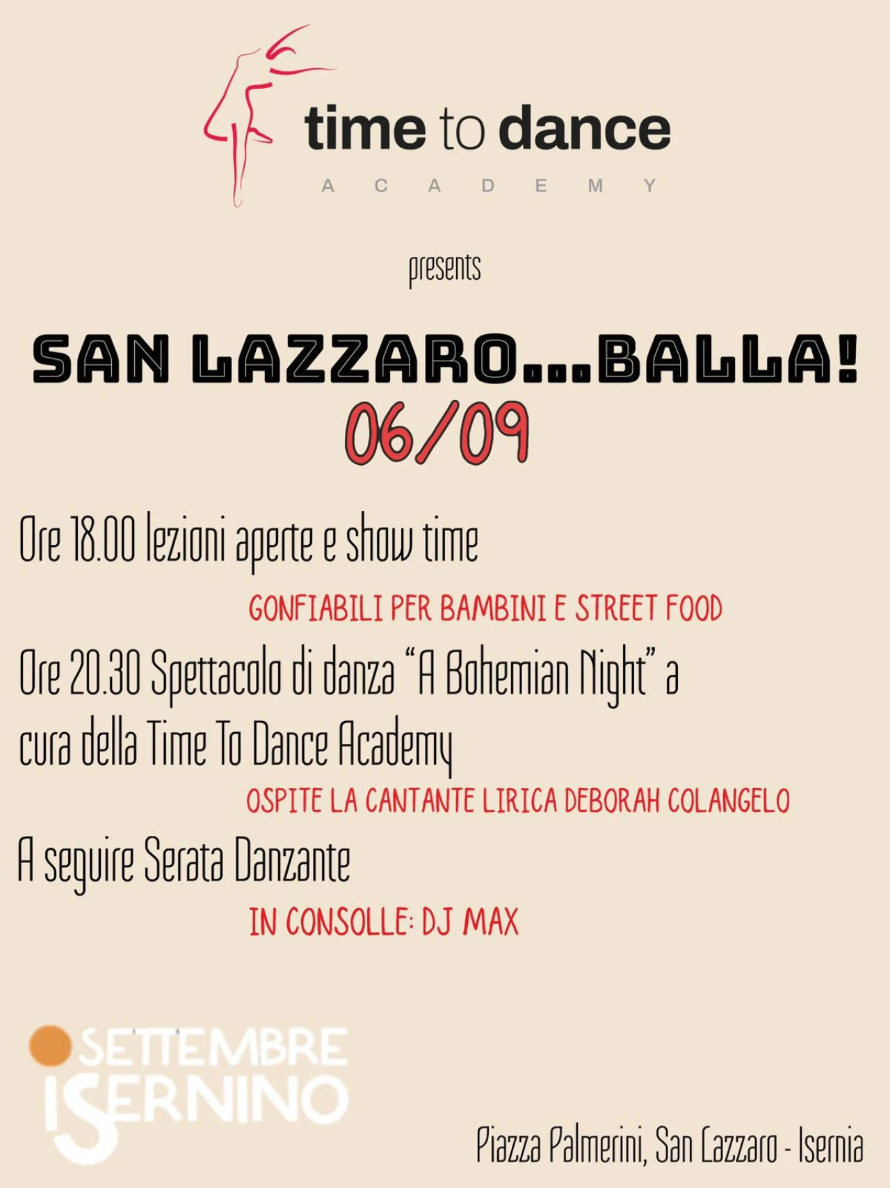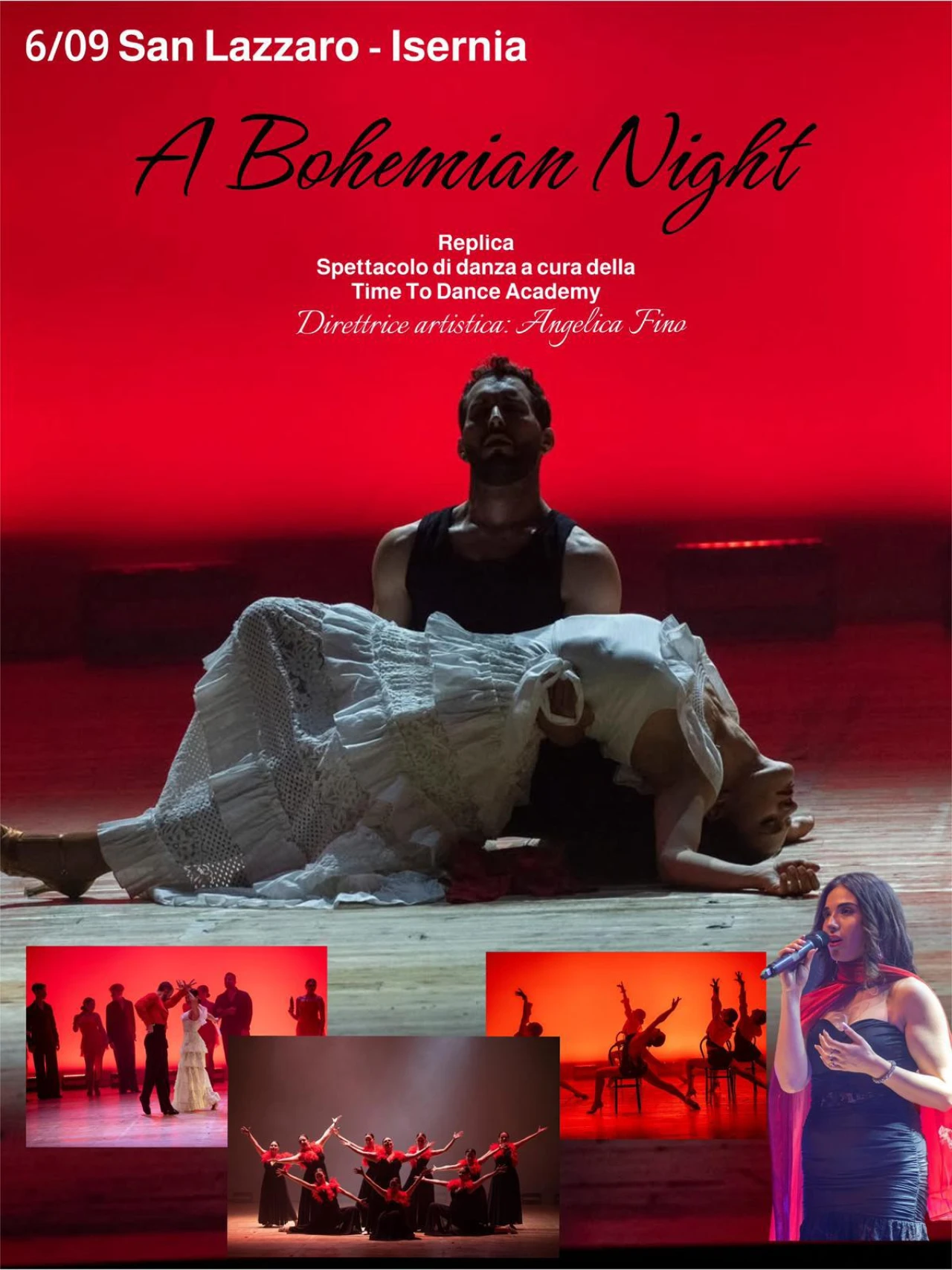 Alle ore 20.30 il grande show della Time To Dance Academy, “A bohemian night” a cura della direttrice artistica Angelica Fino.