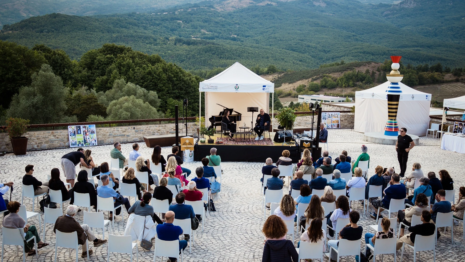 CASTEL DEL GIUDICE. Walter Veltroni, Emilio Casalini, Alessandra Macchitella, Giuseppe Cerasa, Giorgio Dell'Arti, Lauretta Colonnelli sono stati i protagonisti della 3° edizione di RadicalMente, festival letterario del sentire e del vivere radicalmente, senza compromessi, diretto da Luciana Petrocelli e promosso dal Centro Studi Casa Frezza in collaborazione con il Comune di Castel del Giudice, la Pro Loco “G. Caldora”, il Ministero della Cultura, Borgotufi Albergo Diffuso e Società Dante Alighieri. La piazza panoramica dell’albergo diffuso Borgotufi di Castel del Giudice (IS) ha accolto il 5 e 6 settembre 2025 un pubblico attento e partecipe alla narrazione di storie ed idee che hanno celebrato la bellezza del pensiero che risveglia e scuote le coscienze offrendo una visione che privilegia il rumore al silenzio dell’accettazione. Un concetto che ben si inserisce nel grande processo di rigenerazione sociale, economica e culturale che il paese sta vivendo, nell' ottica di dare nuova linfa e un nuovo sviluppo sostenibile all' area interna molisana, attraendo nuovi abitanti, come indicano le azioni messe in campo dal progetto Castel del Giudice Centro di (Ri) generazione dell' Appennino, con il quale il Comune ha vinto il Bando Borghi del PNRR.