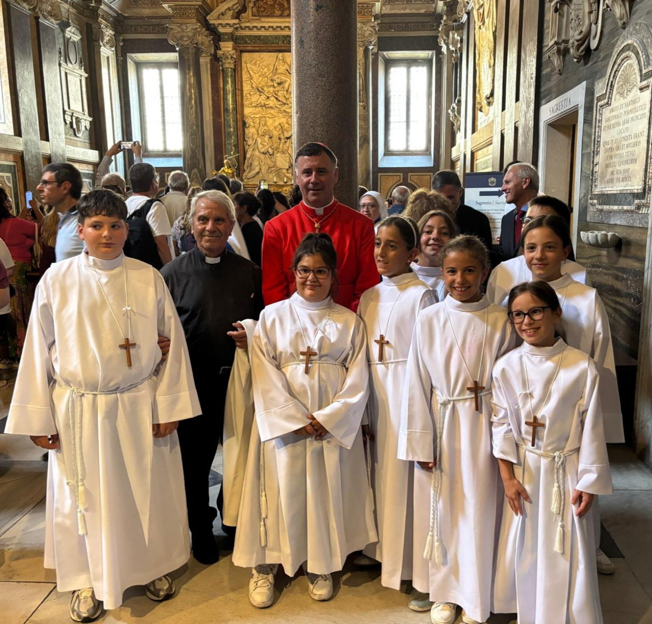 CASTELPETROSO. I bambini della parrocchia di Santa Maria della Mercede di Castelpetroso, che hanno ricevuto il Sacramento della prima comunione lo scorso 29 giugno, domenica, accompagnati dall'instancabile parroco don Salvatore Lombardi, hanno celebrato il loro Giubileo presso la Basilica Papale di Santa Maria Maggiore in Roma.