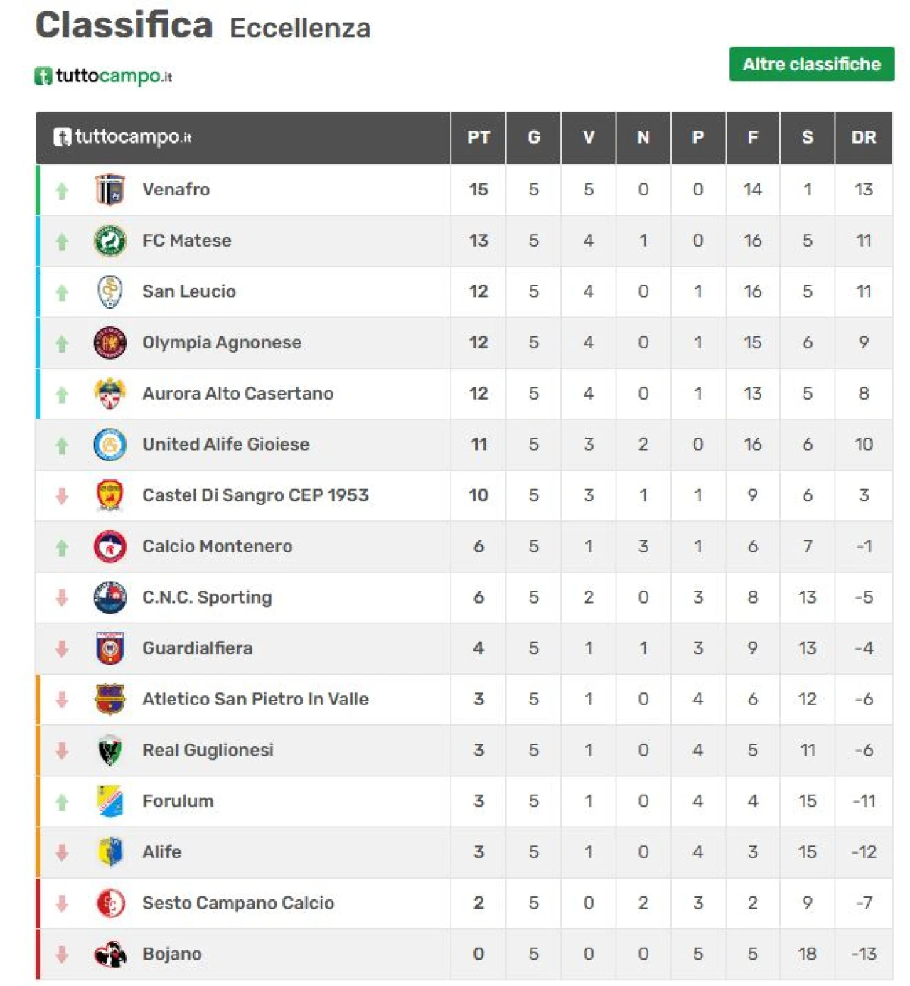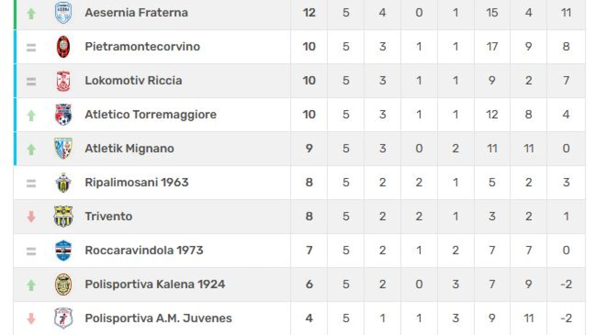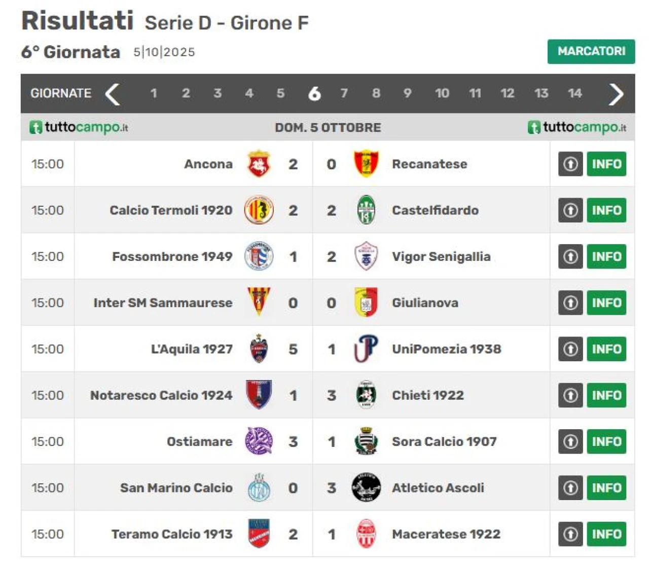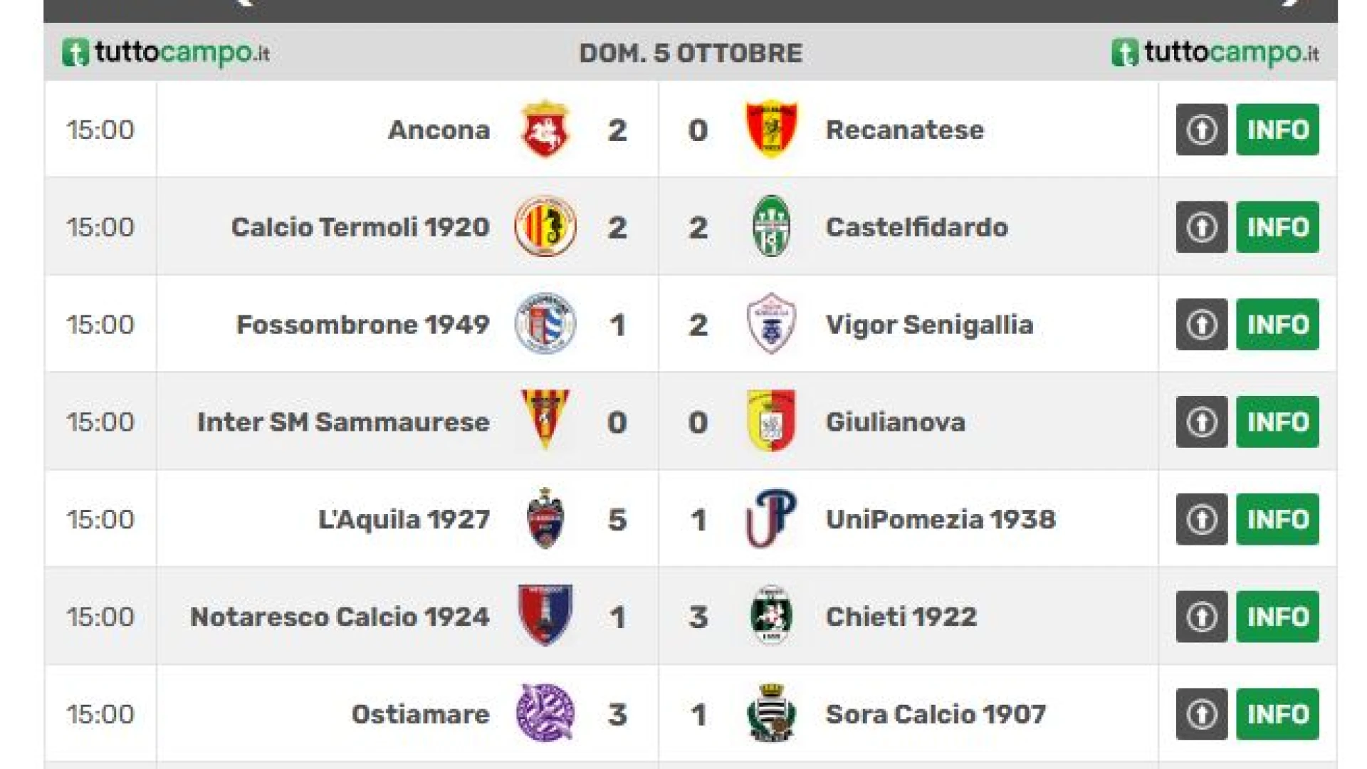 Nella gallery fotografica a margine dell'articolo consulta i risultati e le classifiche aggiornate dei vari campionati: Serie D girone F, Eccellenza e Promozione Molise.