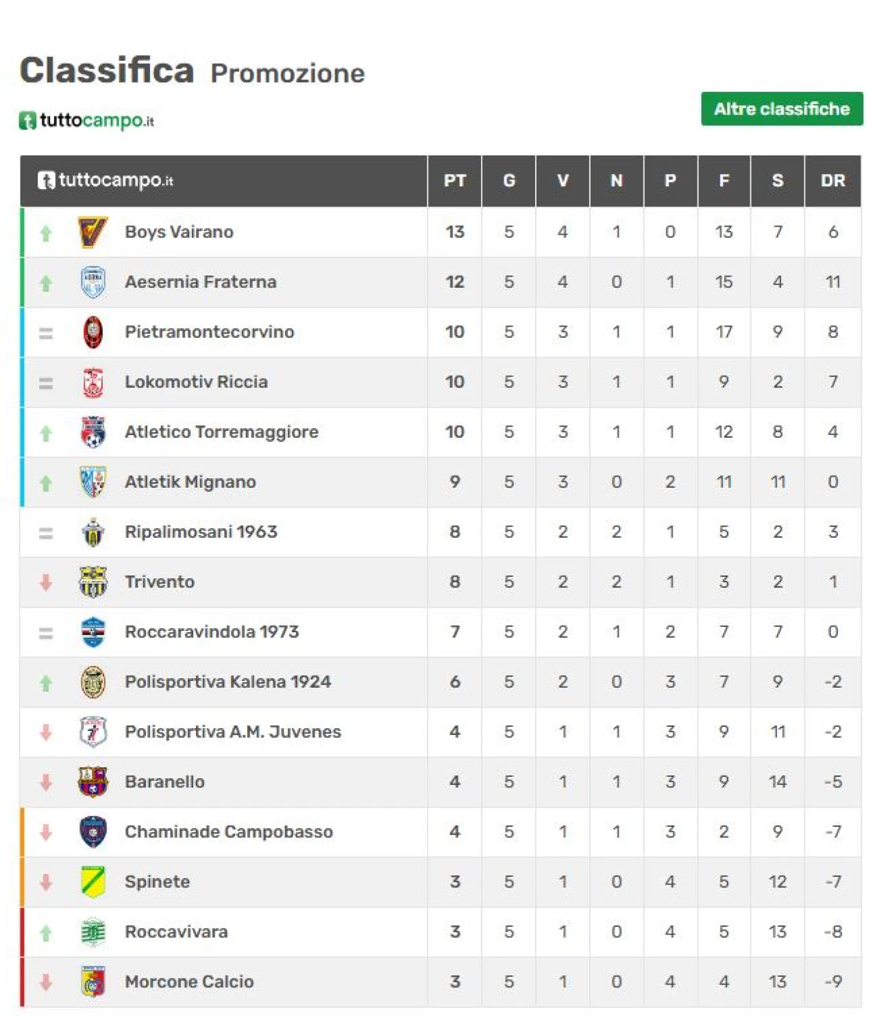 Risultati e classifiche aggiornati dei vari campionati dopo il fine settimane di gare. Consulta le schermate di Serie D girone F, Eccellenza e Promozione Molise.