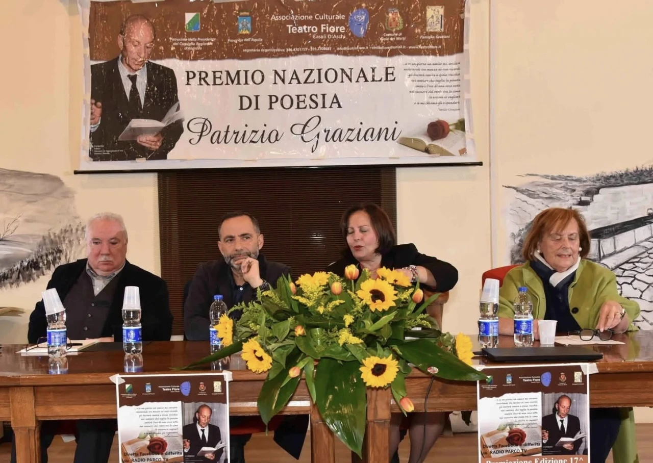 GIOIA DEI MARSI - Si è conclusa al Centro culturale di Gioia dei Marsi (L'Aquila) la XVII edizione del Premio nazionale di Poesia "Patrizio Graziani", manifestazione che ogni anno richiama autori da tutta Italia e rappresenta un consolidato appuntamento nel panorama letterario abruzzese. L’edizione 2025 ha coinciso con il venticinquesimo anniversario della scomparsa di Patrizio Graziani e con la prima senza Pierluigi Graziani, figure che, come ha ricordato il primo cittadino di Gioia dei Marsi, Gianluca Alfonsi, "hanno contribuito in modo determinante alla crescita del Premio". L’iniziativa è stata promossa dall’associazione culturale "Teatro Il Fiore" di Casali di Aschi, in collaborazione con la famiglia Graziani, con il patrocinio del Consiglio regionale d’Abruzzo, della Provincia dell’Aquila e del Comune di Gioia dei Marsi. La cerimonia di premiazione, condotta da Emilio Roselli e Tiziana Di Salvatore, ha visto la partecipazione del sindaco Alfonsi, presidente onorario della giuria, e dei componenti: Cesira Sinibaldi, Maria Assunta Oddi e Florideo Matricciano, con l’assenza giustificata di Salvatore Cococcetta. Oltre cinquecento le opere esaminate, suddivise nelle sezioni di lingua italiana e vernacolo. La serata è stata arricchita dalle letture di Filomena Fazi e Raffaella Palchetti, oltre che dall’intervento musicale del maestro Pierpaolo Battista Corrado. La documentazione fotografica è stata curata da Pasquale Apone, mentre Radio Parco ha seguito l’evento in diretta streaming.