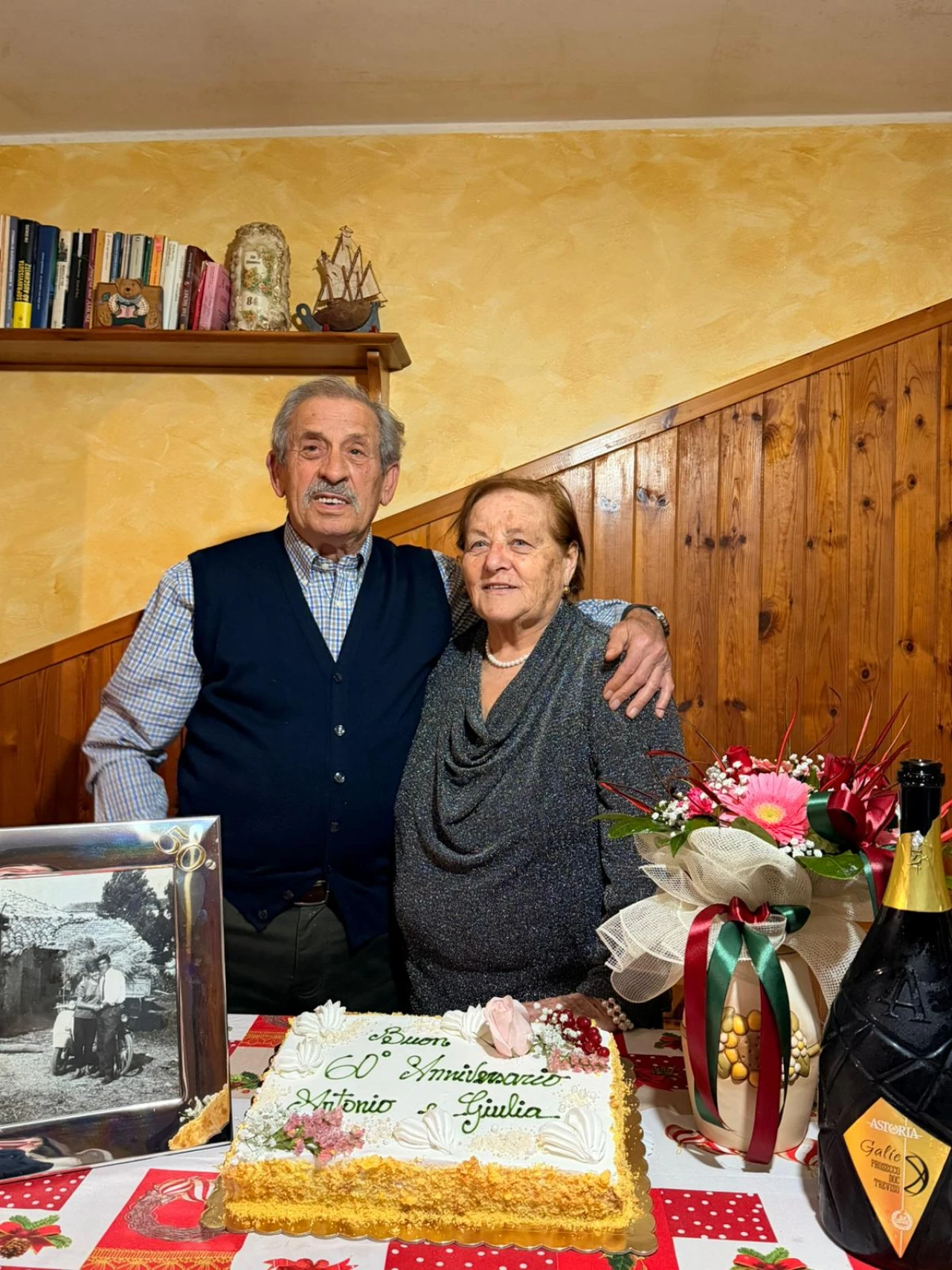 FORNELLI. Una giornata speciale quella di lunedì 5 gennaio 2026 per i coniugi Antonio Ialongo e Giulia Petrarca che festeggiano i loro 60 anni di matrimonio. Per loro quest’oggi le nozze di diamante. Sono trascorsi ben 60 anni da quel 5 gennaio del 1966. A loro giunga oggi un pensiero ed un augurio speciale da parte dei figli Adelia, Lorenzo, Pietro, Fernando e Silvia. Auguri sentiti anche da parte di tutti i familiari.