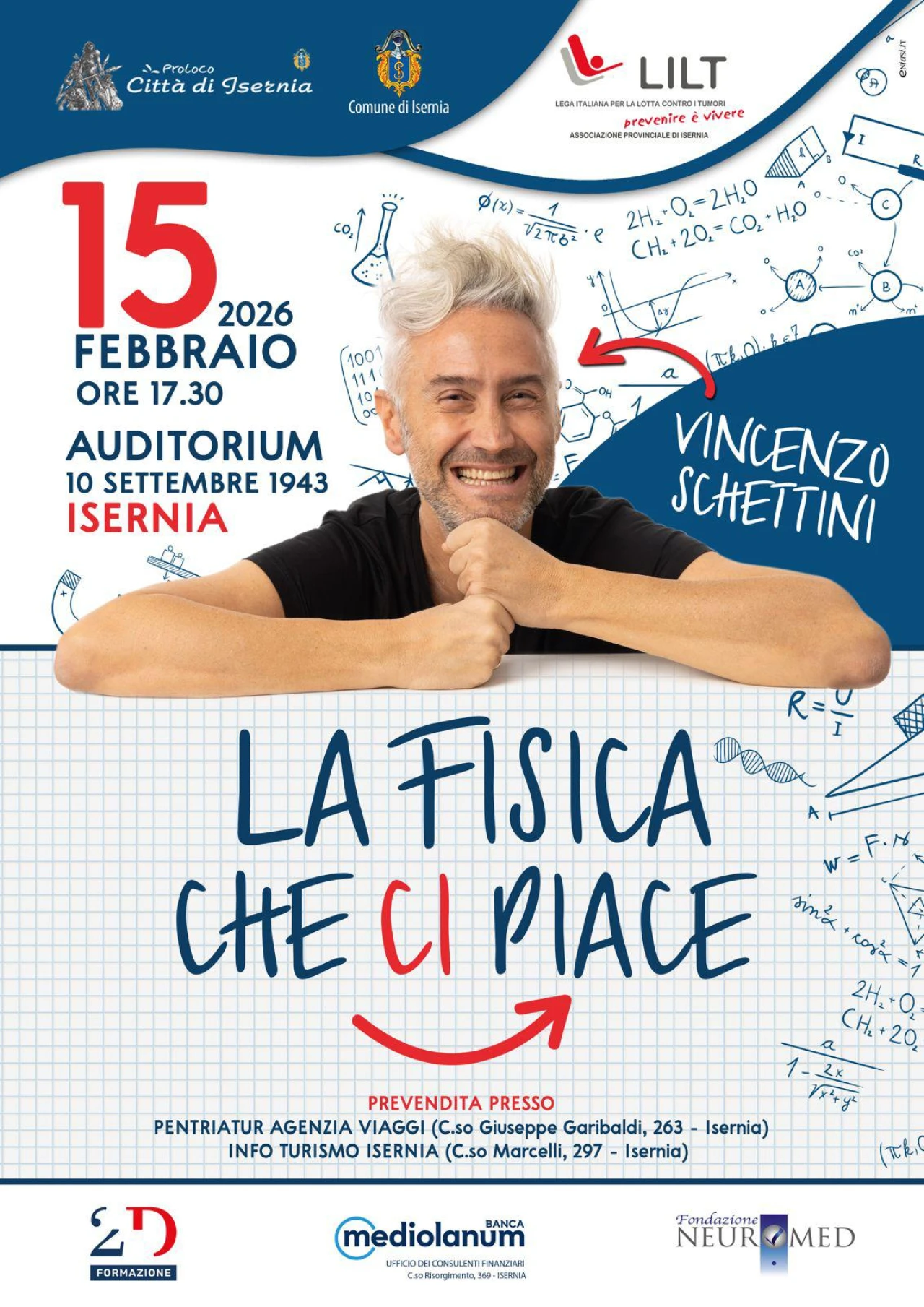 Ospite dell’incontro sarà il professor Vincenzo Schettini, noto divulgatore scientifico e autore della seguitissima pagina Instagram “La fisica che ci piace”. Un progetto nato dall’esigenza di vivere la scienza come momento di socialità e di confronto, capace di stimolare la curiosità e avvicinare le persone al sapere in modo semplice e coinvolgente.
